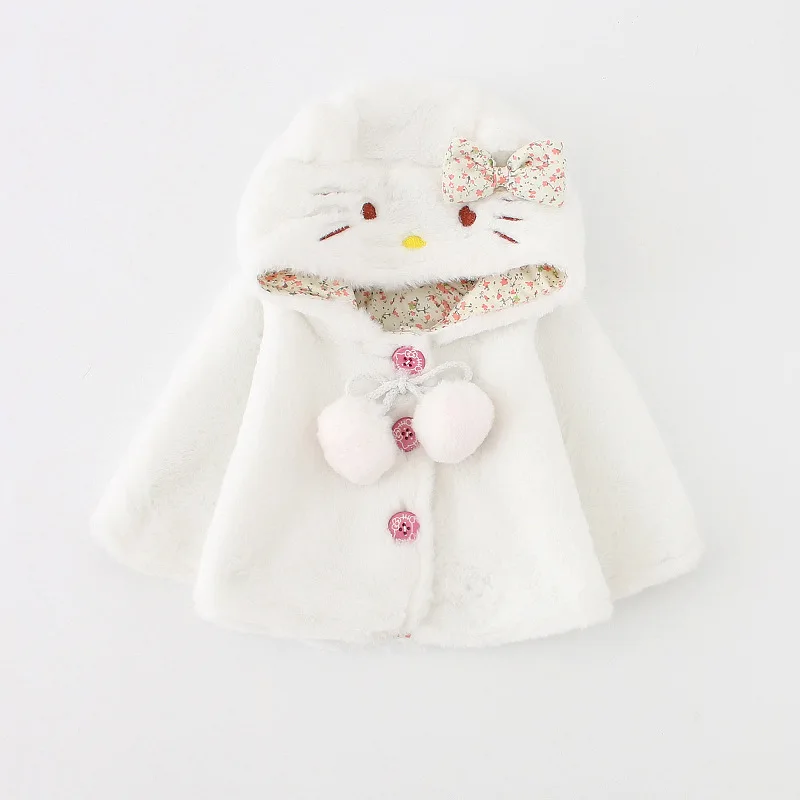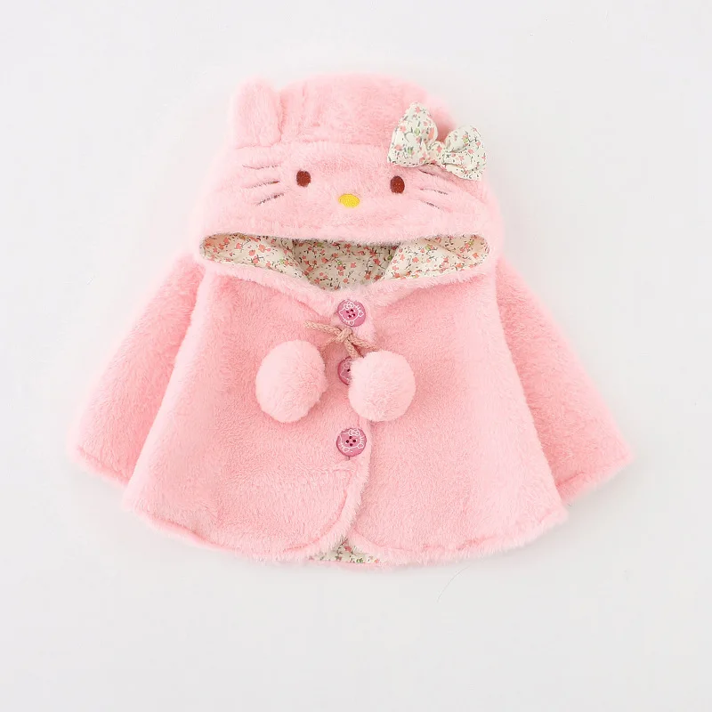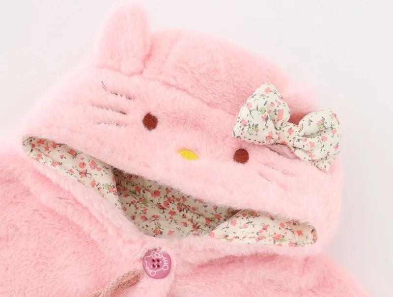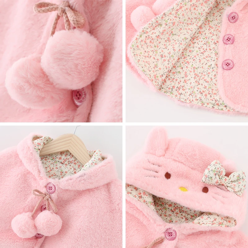 3 6 9 12 Months Newborn Clothes Cute Cat Plush Baby Coats For Girl Christmas Little Princess Cloak Warm Hooded Baby Girls Jacket