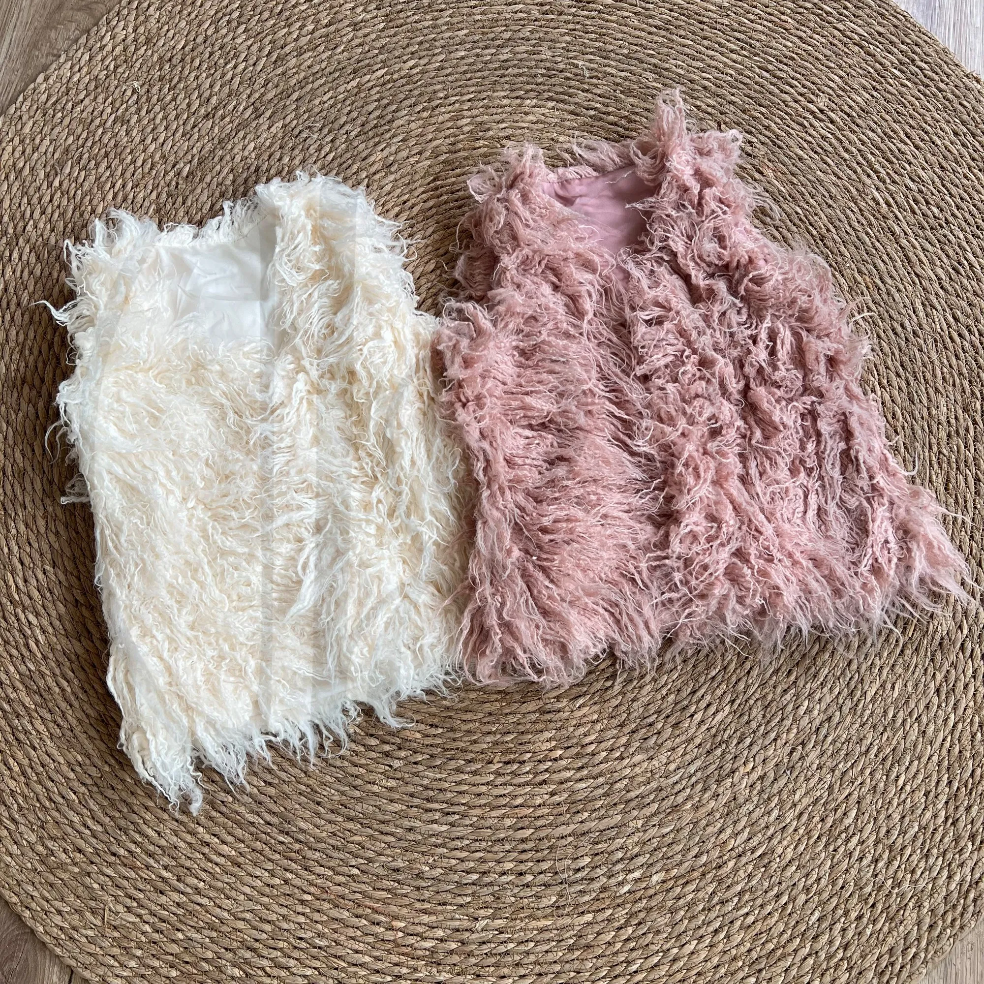 3-6 Years Faux Mongolian Fur Vests for Children Photo Shooting Autumn V Neck Sleeveless Waistcoat for Girl Boy Photography Props