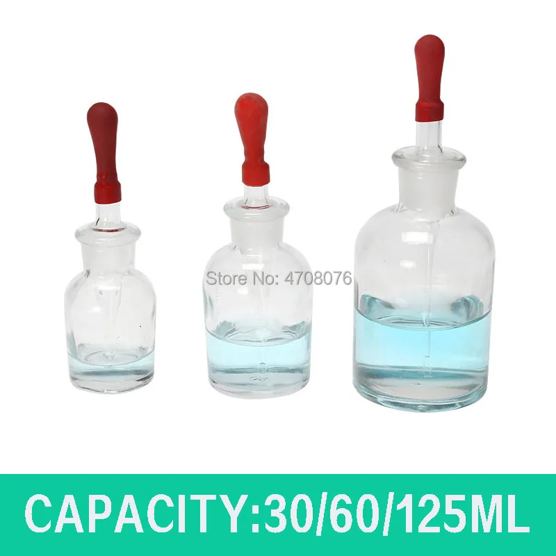 30/60/125ml 3pc/pack Glass Dropping Bottle Pipette Ground Stopper and Dropper Borosilicate dropping bottle Pyrex pipette