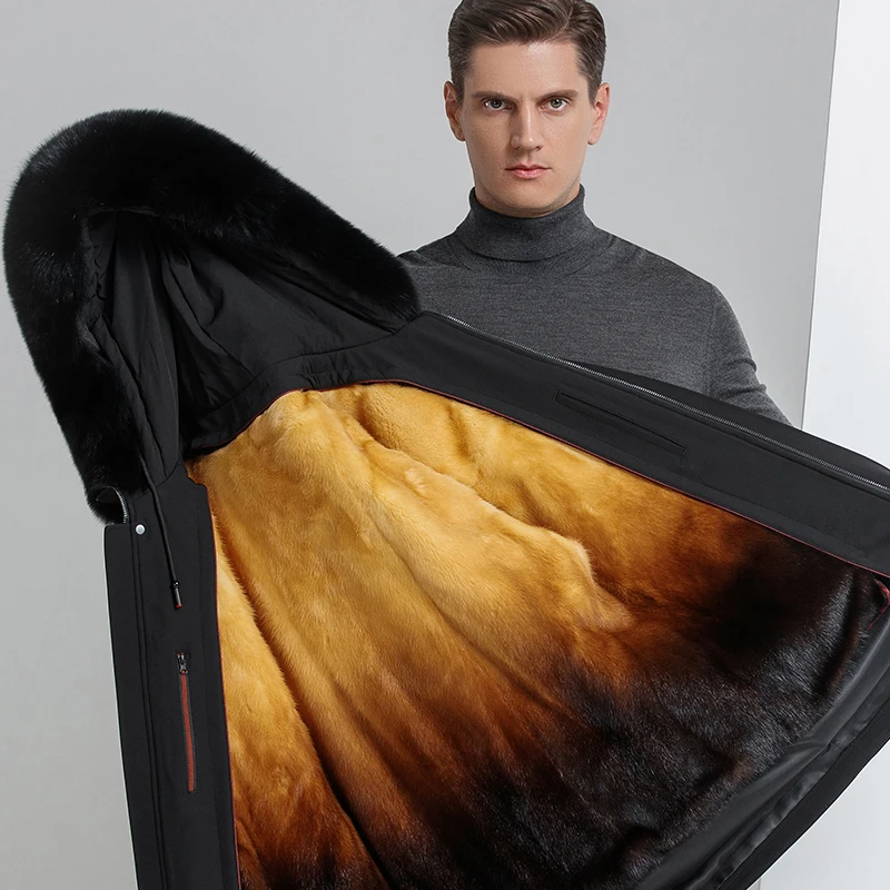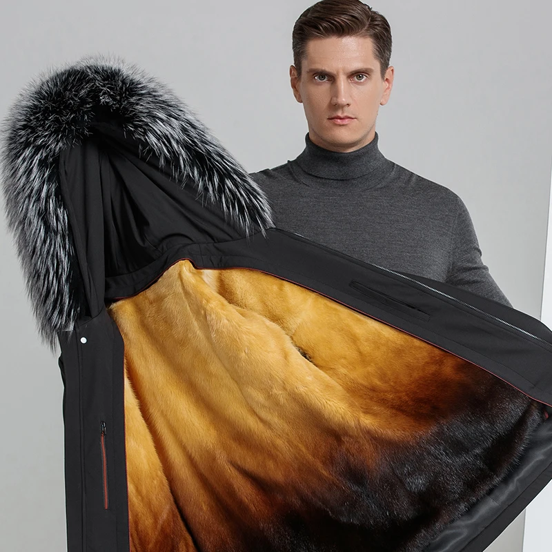-30 degrees Winter Mens Parka With Big Real Fur Collar Warm Coat Casual Thick Winter Waterproof fur Jacket Size 4XL