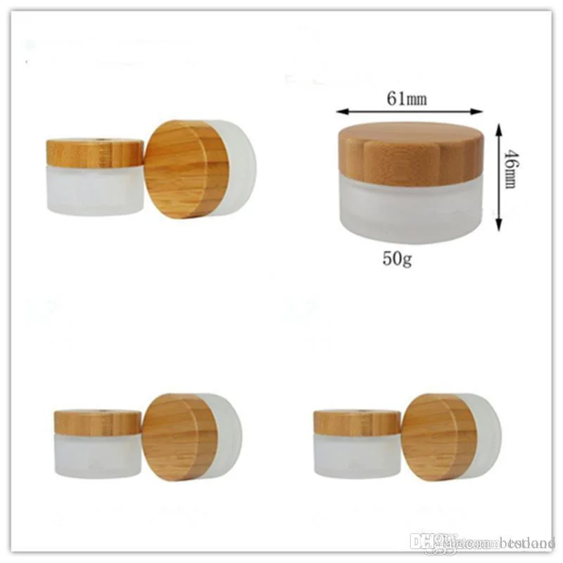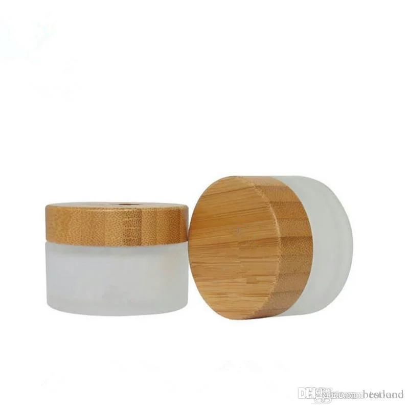 30g 50g frosted glass cream jar with bamboo lid.Cosmetics packing bottles with wooden cover empty glass cosmetic jar