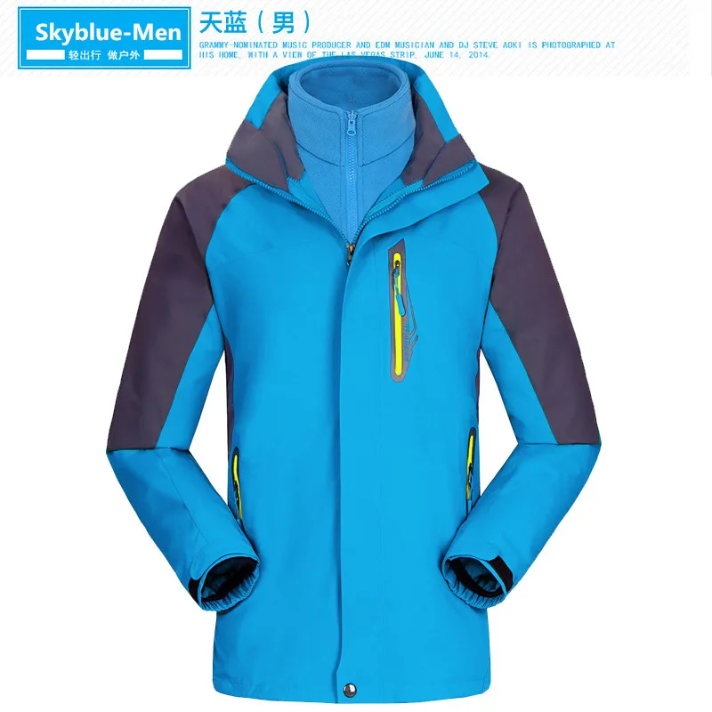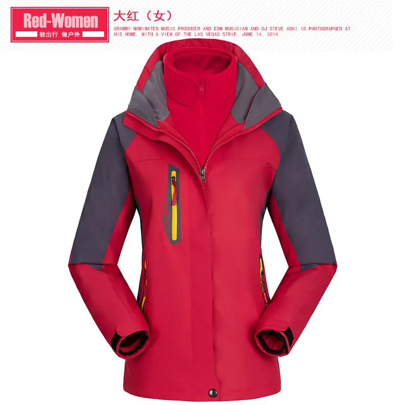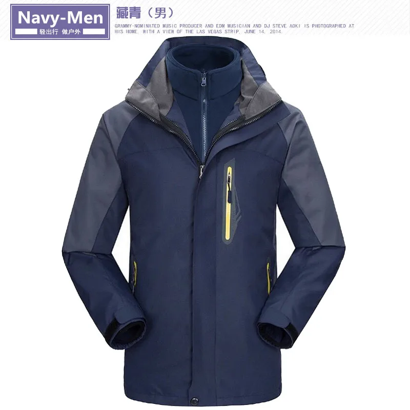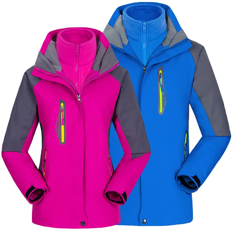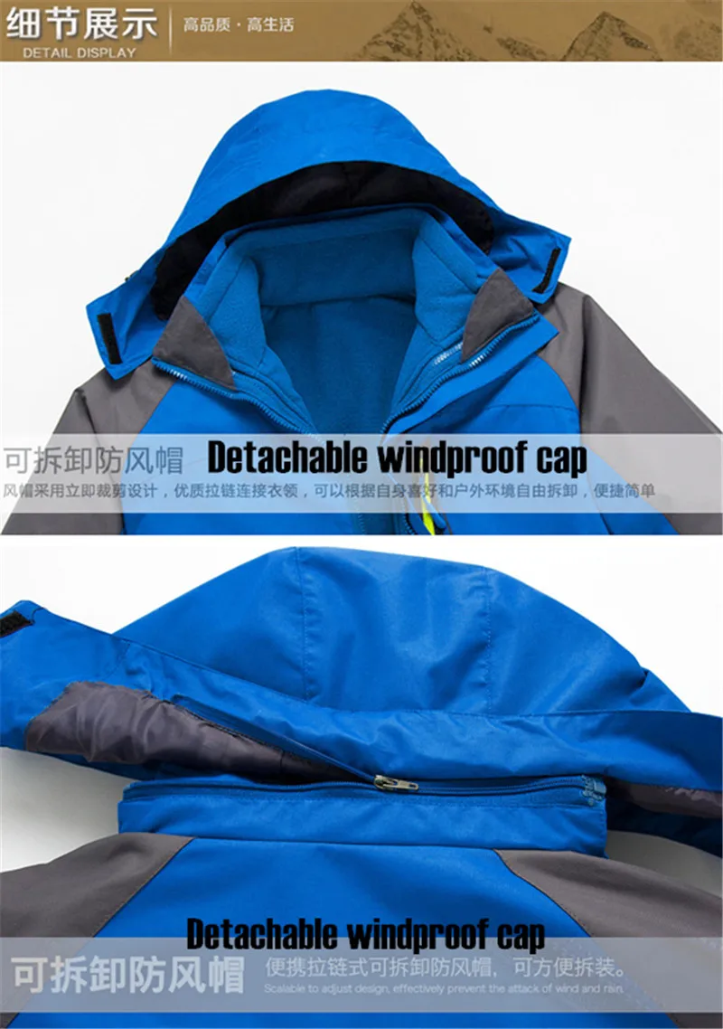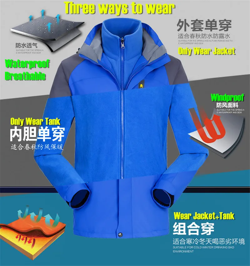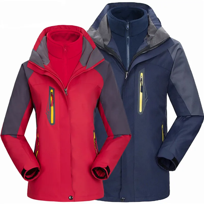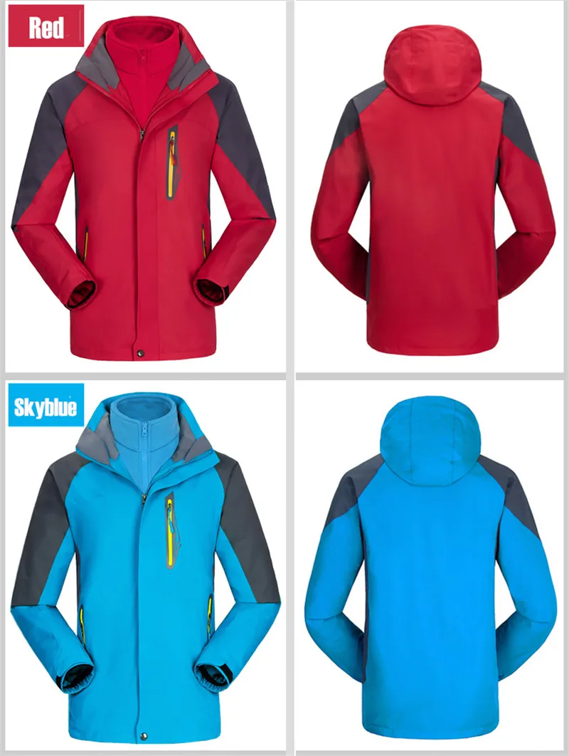 3 in 1 Outdoor Sport Men’s Winter Hooded Jacket Coat Windproof Waterproof Ski-wear Fleece Inner Tank Thermal Women’s Windbreaker