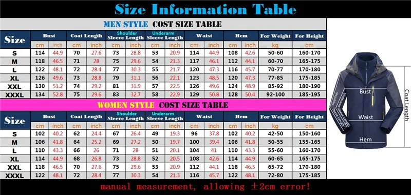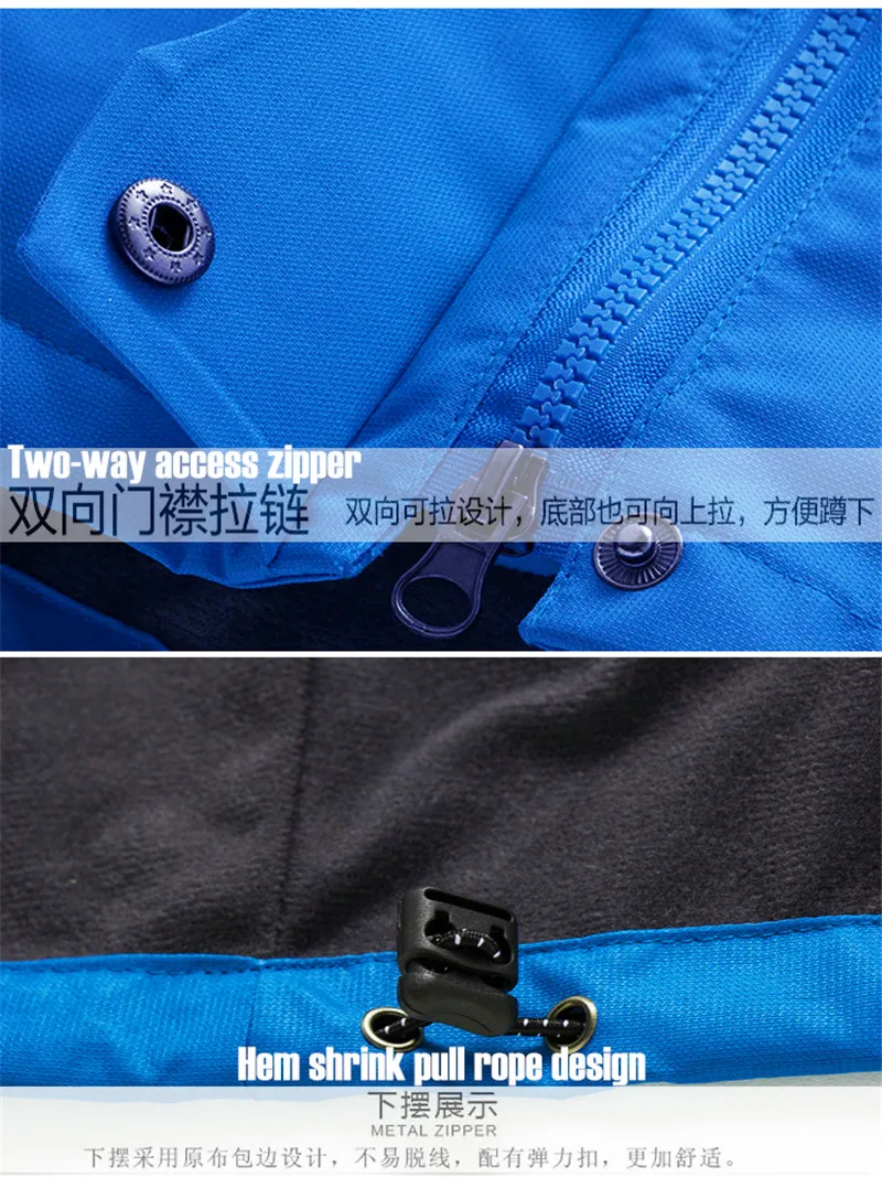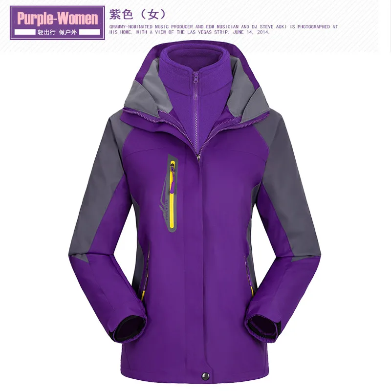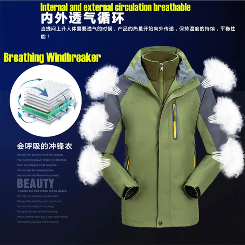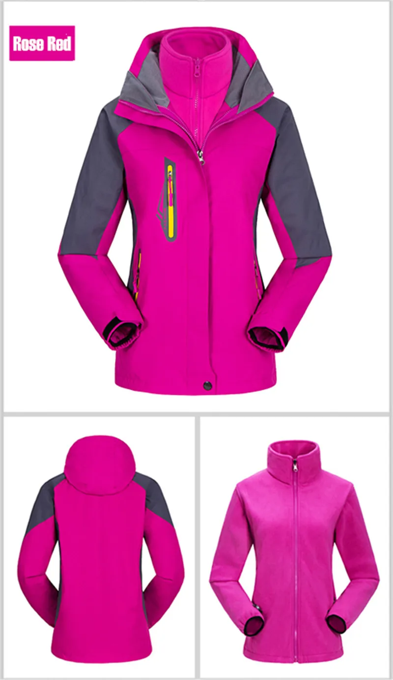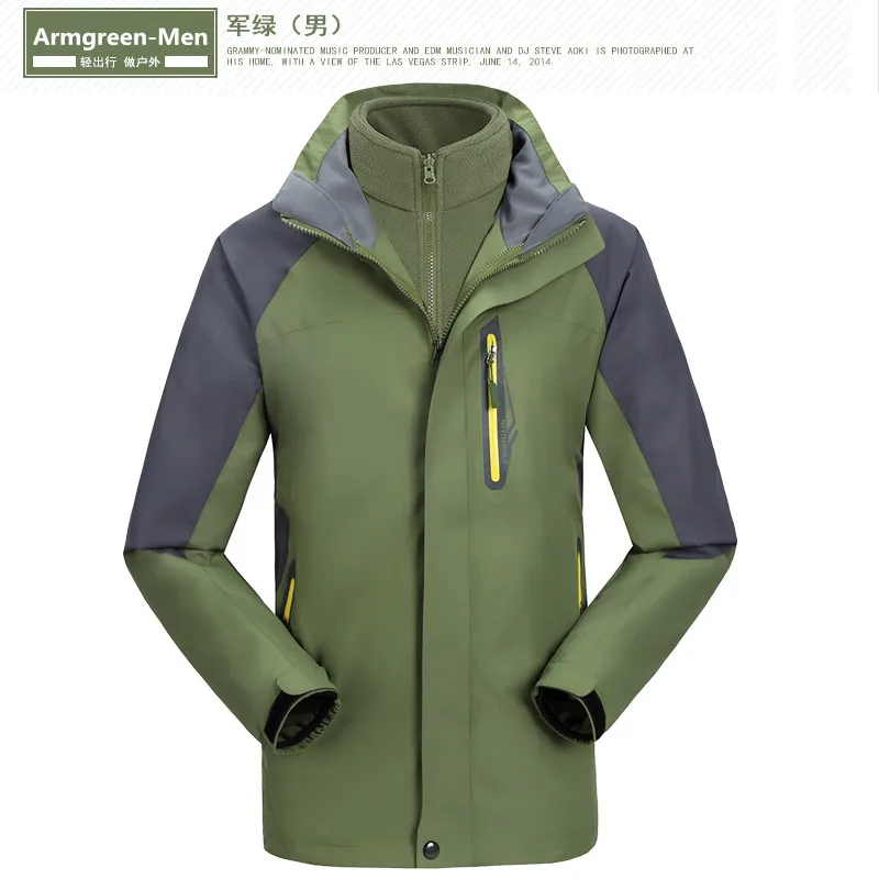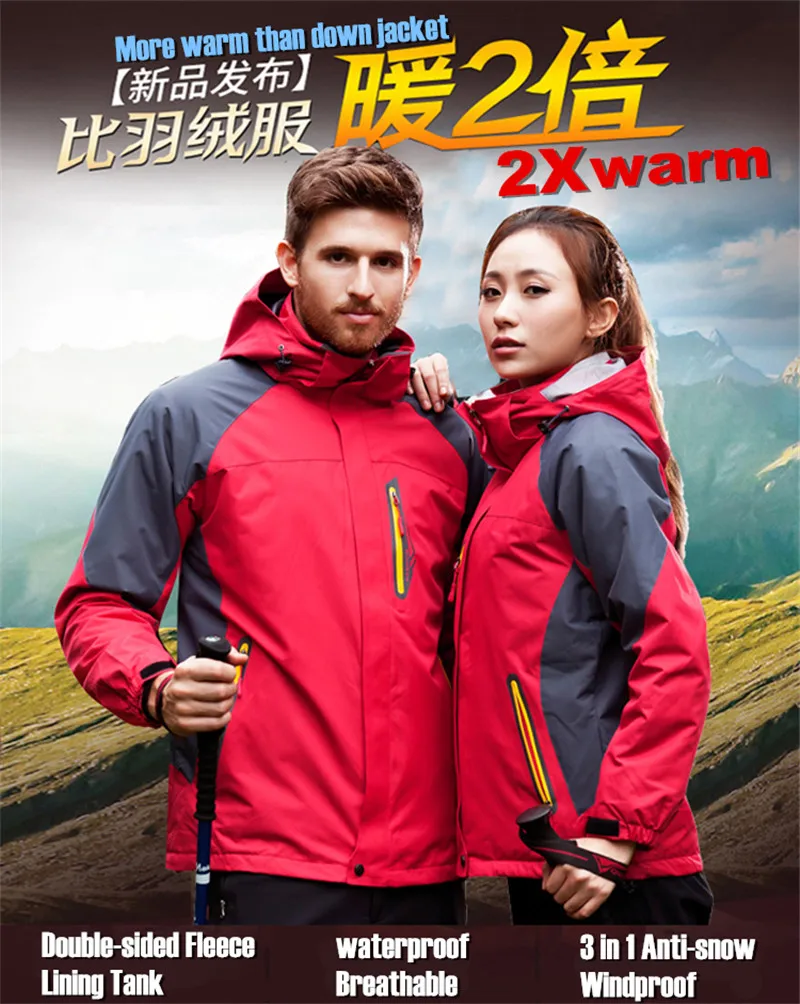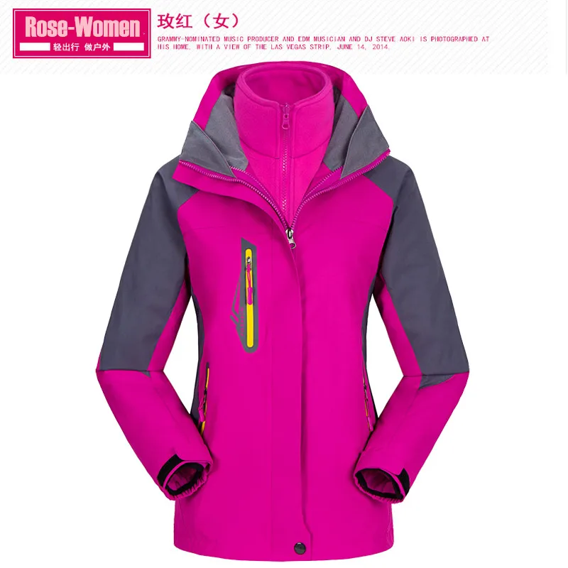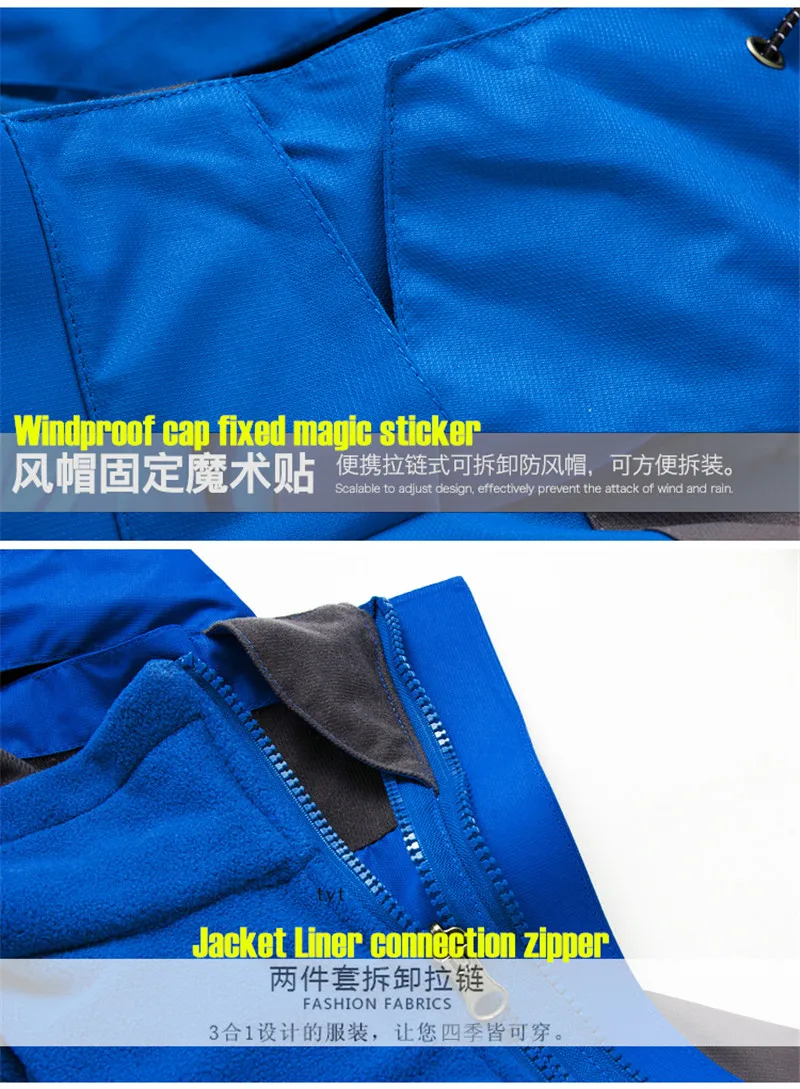 3 in 1 Outdoor Sport Men’s Winter Hooded Jacket Coat Windproof Waterproof Ski-wear Fleece Inner Tank Thermal Women’s Windbreaker