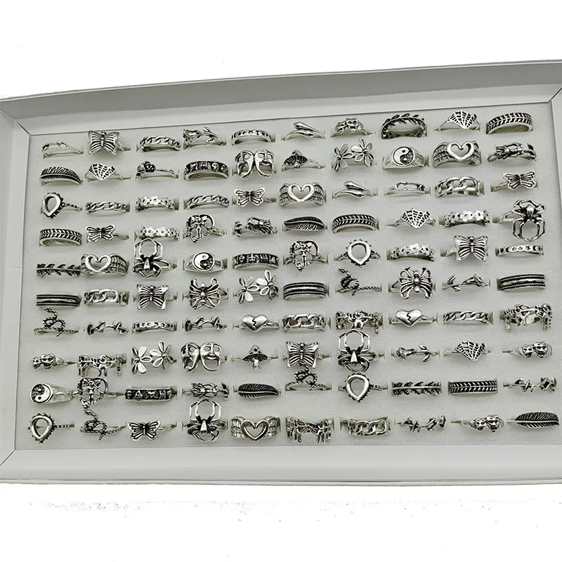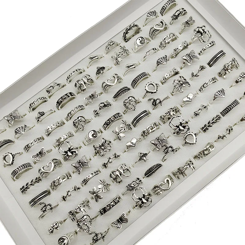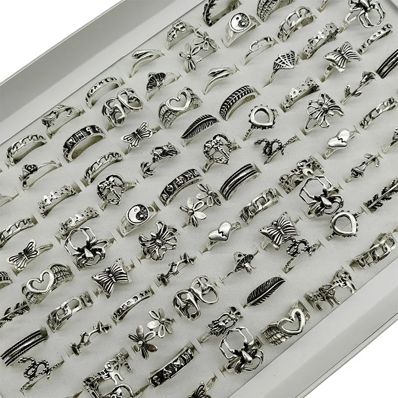 30pcs/Lot Factory Wholesale Alloy Finger Rings For Women HOT New Big Flower Cutout Skull Spider Animal Leaf Love Snake Jewelry