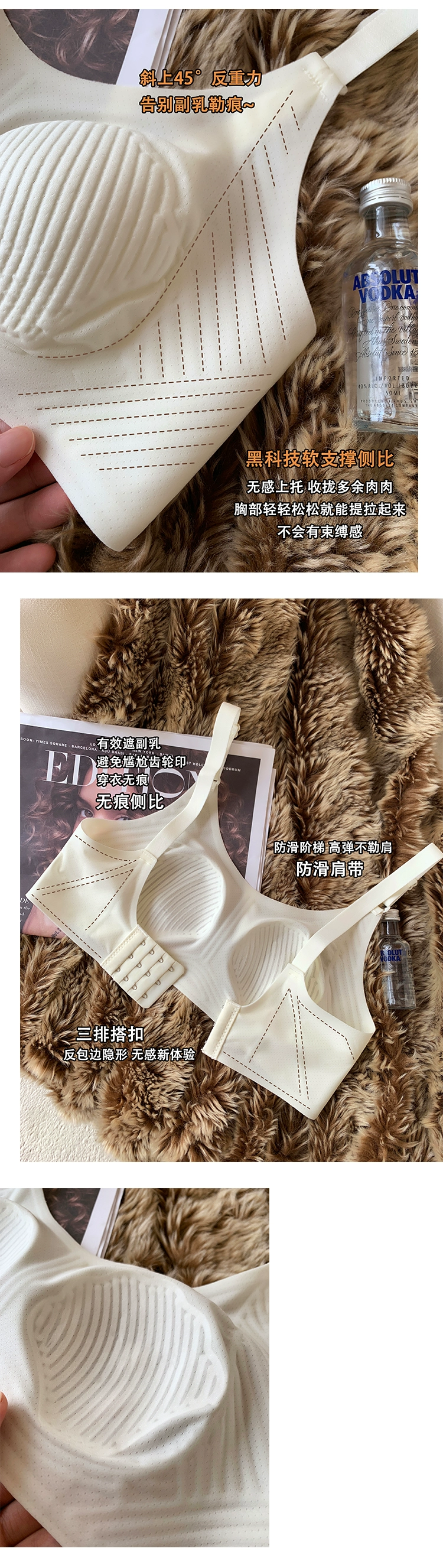 3D non-marking soft lingerie nude cool feeling underwear female large size collect side breasts without steel ring thin bra