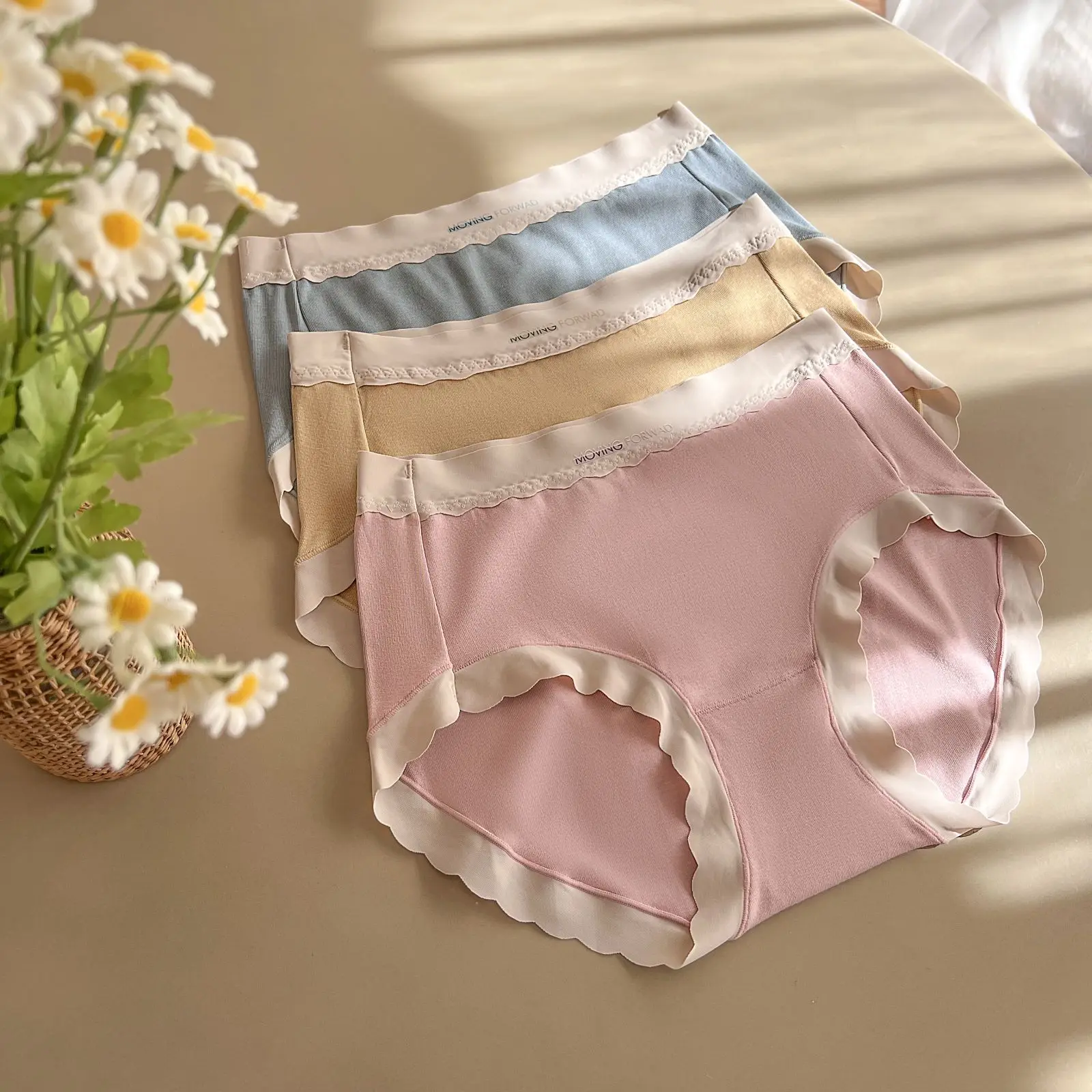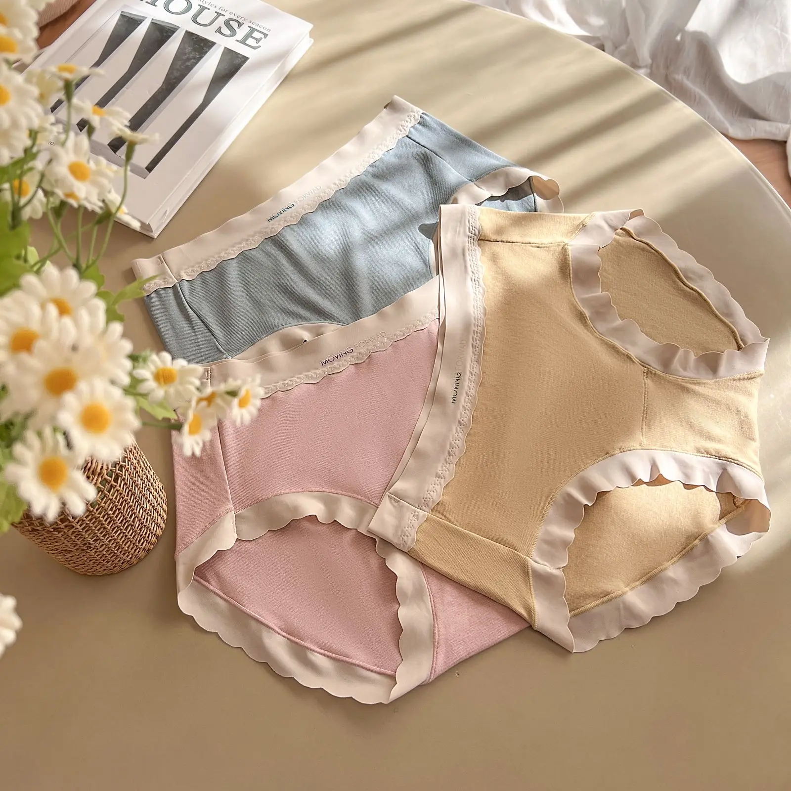 3pcs/set good quality Mid-High waist solid color soft plus size panties set Simple fashion dry and breathable Women’s briefs
