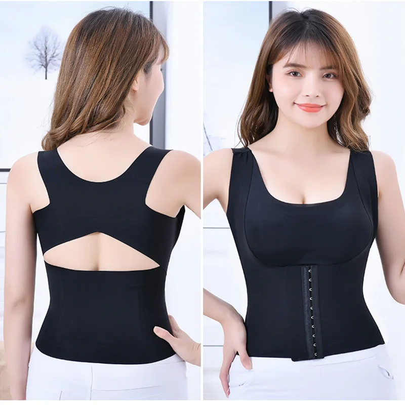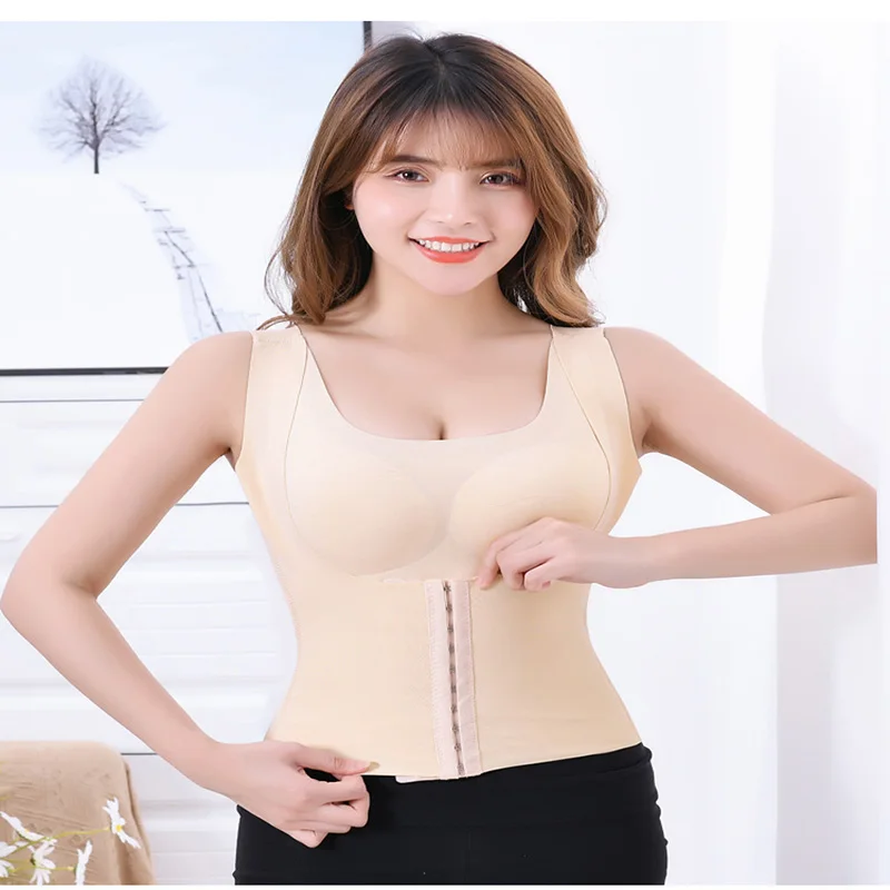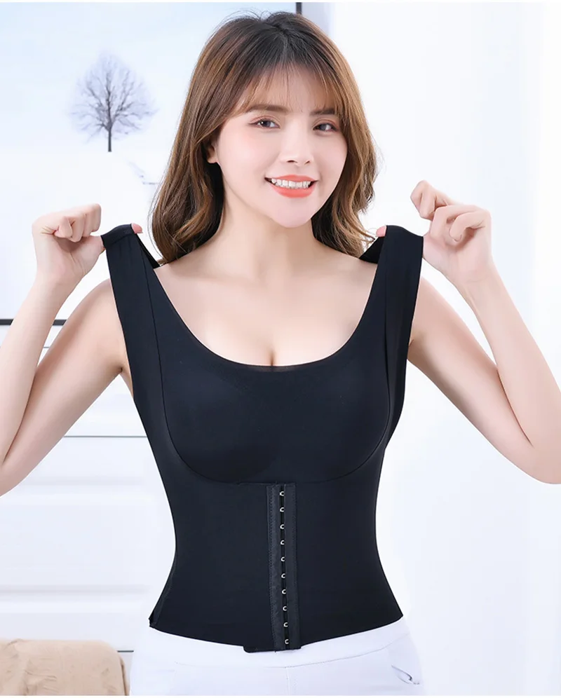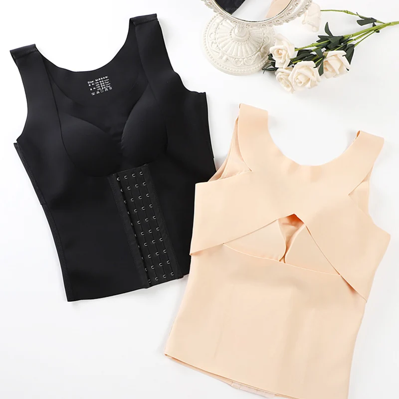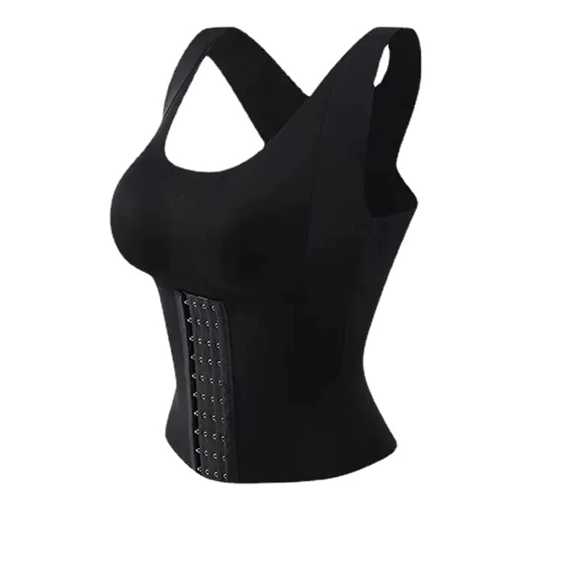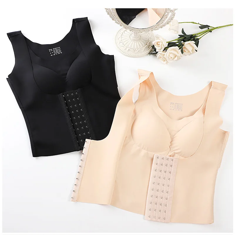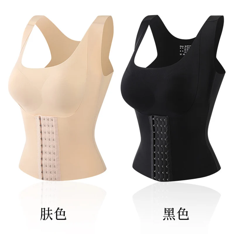 4-in-1 Waist Buttoned Bra Shapewear Seamless Push Up Cotton TopsWireless Sports Vest