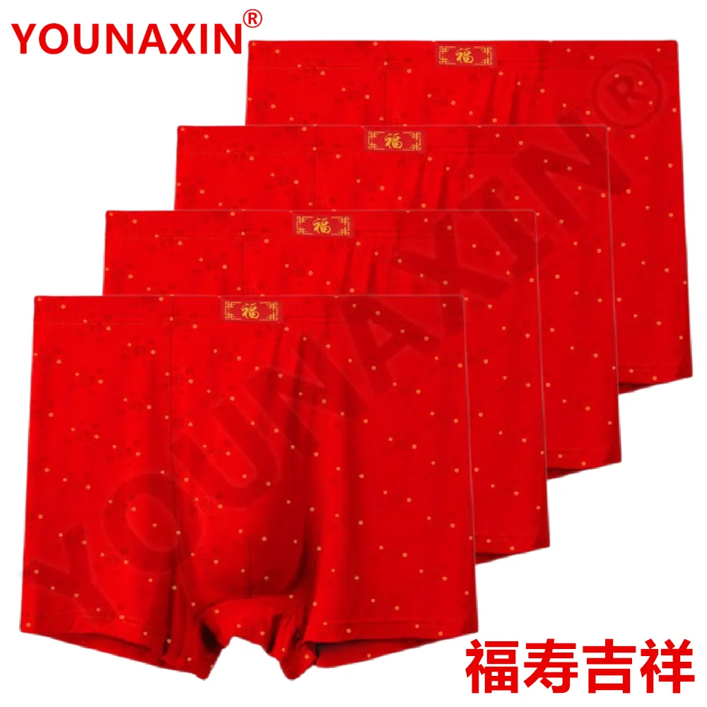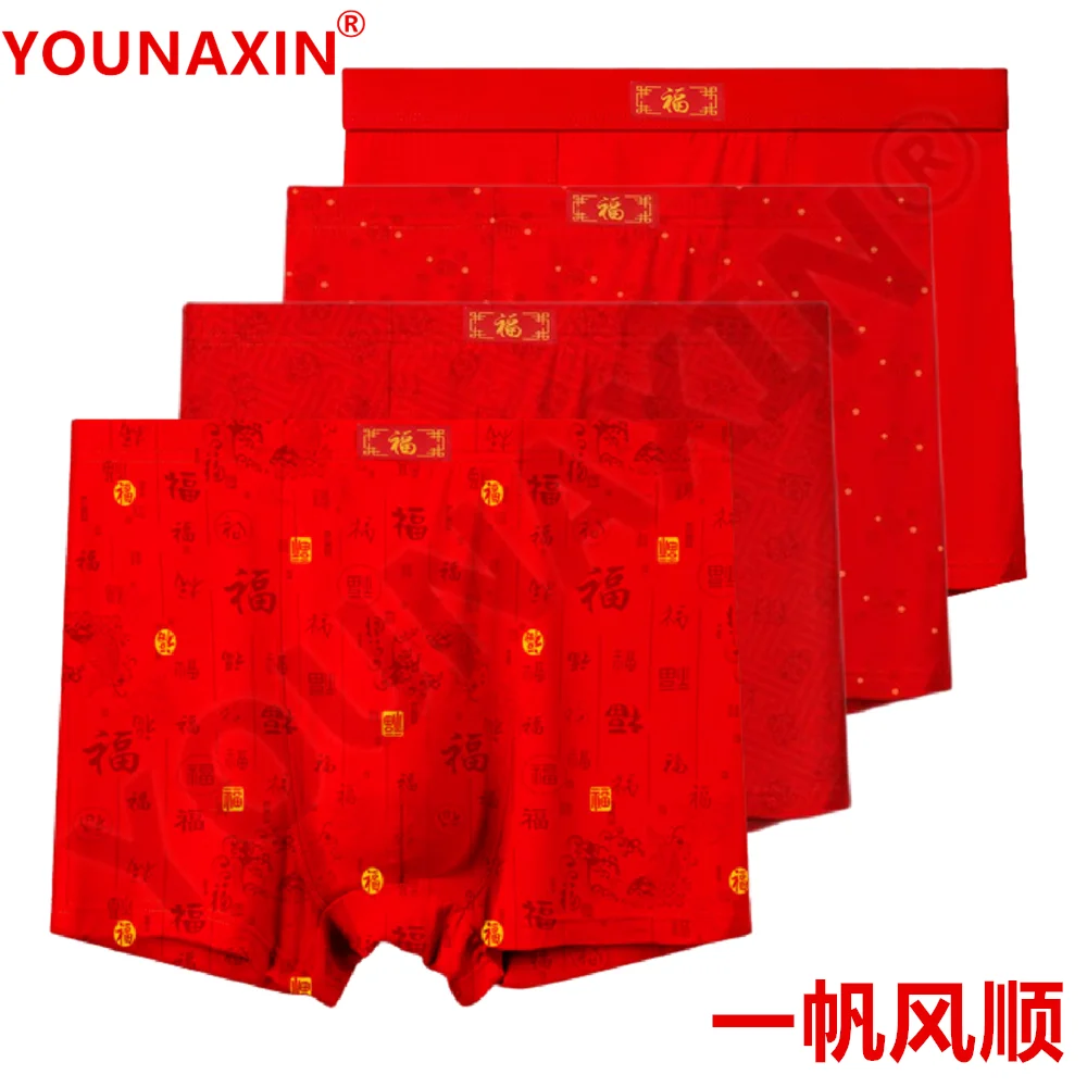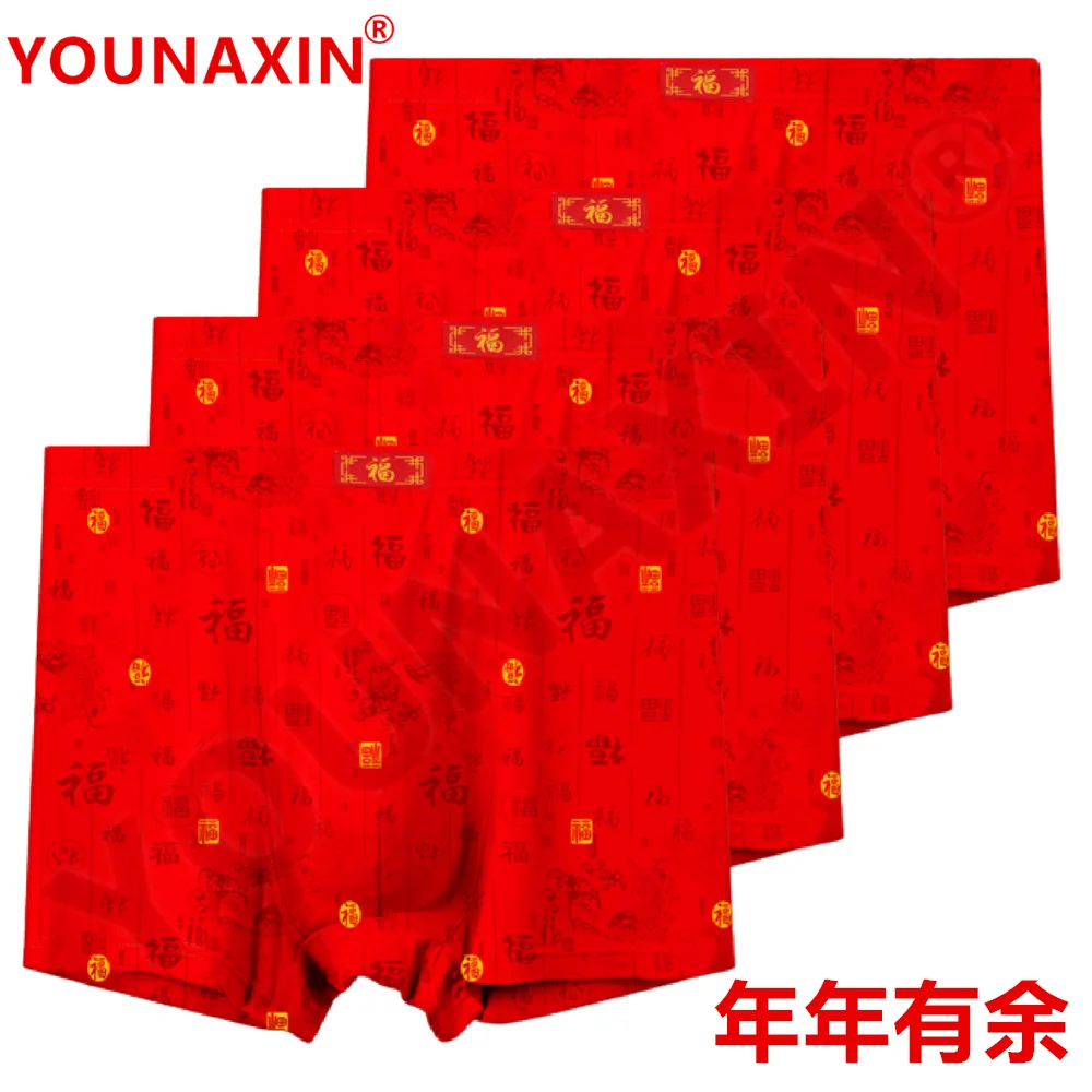 4 Pcs Men Big Size Underwear Boxer Panties Undies Underpant Knickers Red Undershorts Chinese New Year’s Gift 4XL 5XL 6XL 7XL 8XL