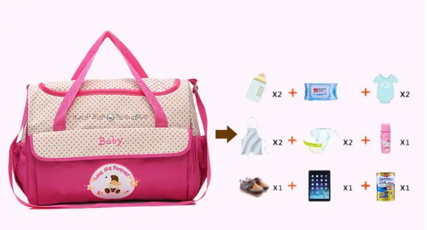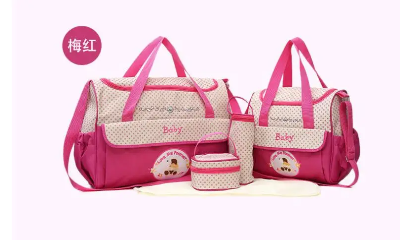4 pcs set mummy bags, pink, brown, navy blue bear diaper bag