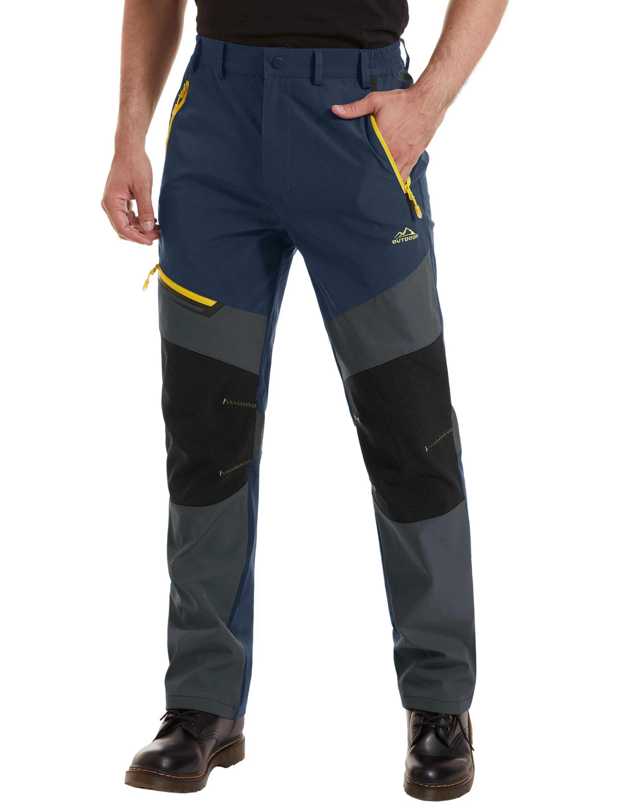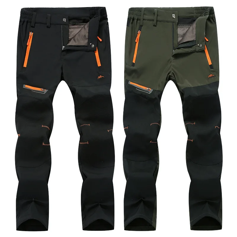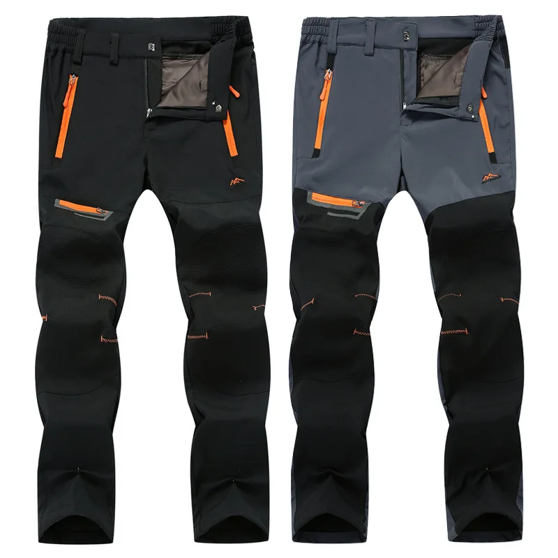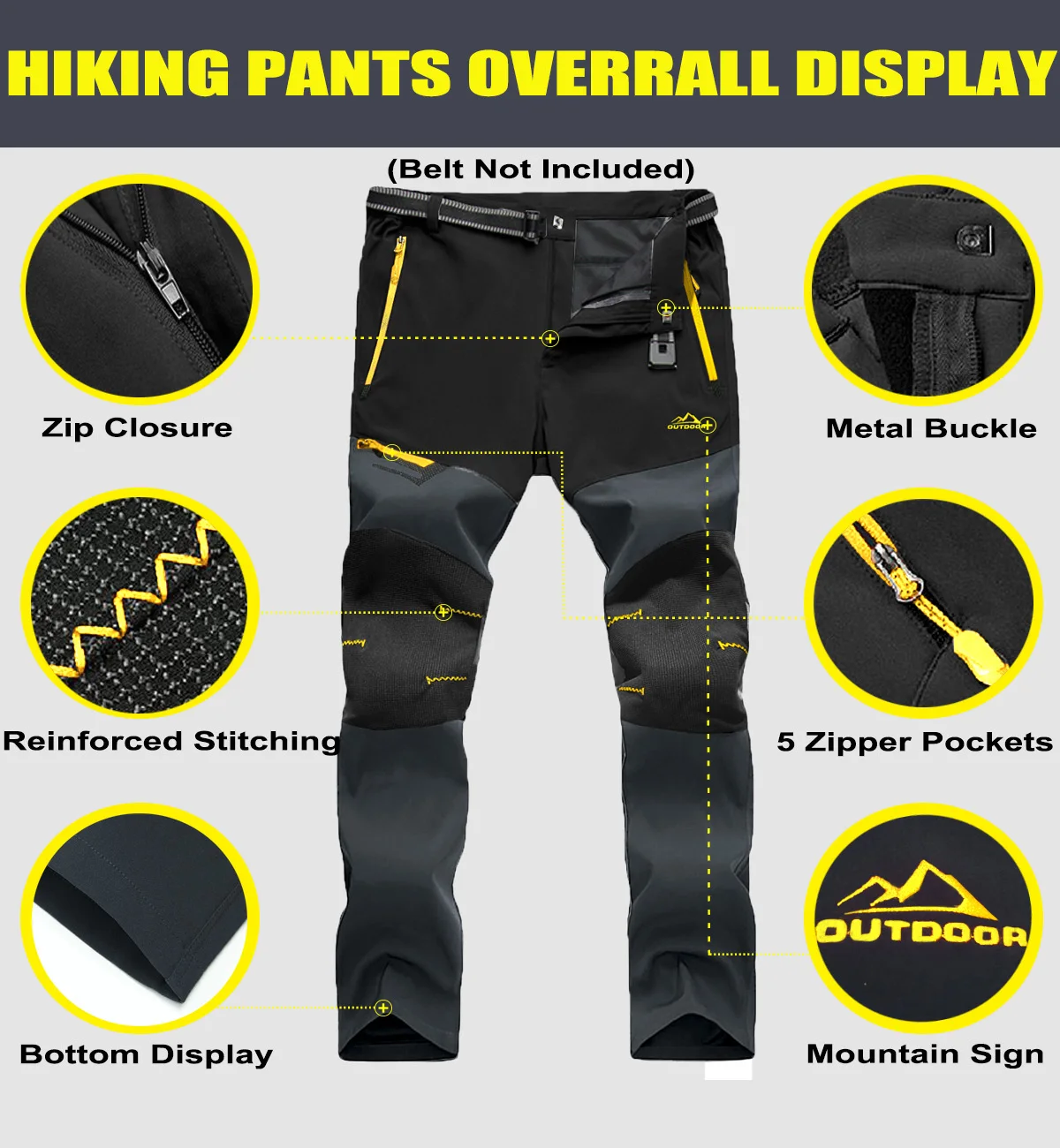 4 Season Breathable Mens Tactical Pants Fishing Hiking Camping Waterproof No Fleece Pants Zipper Pocket Casual Trousers