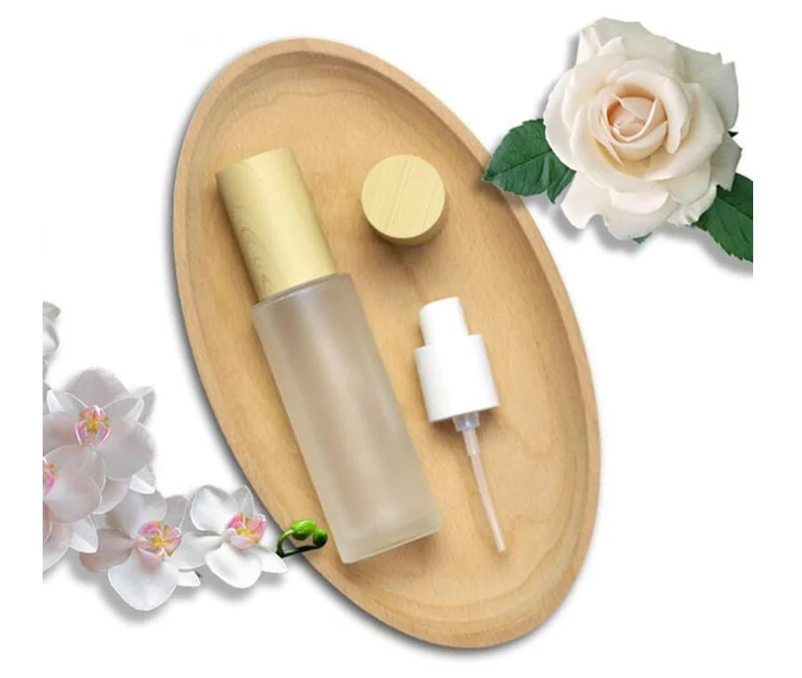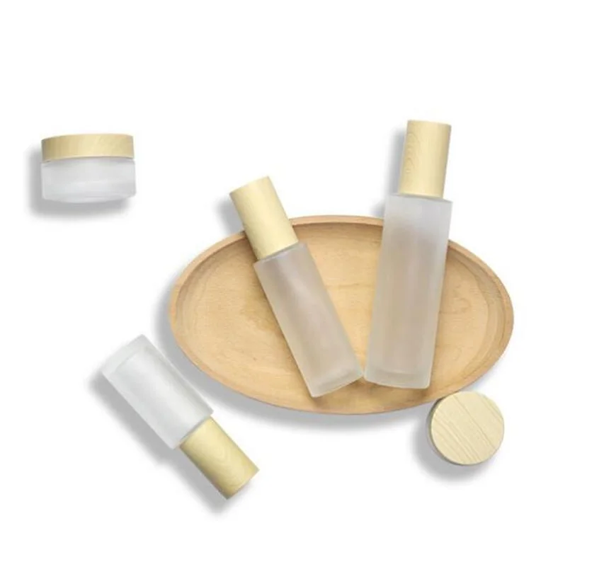 40ml lotion pump Frosted Glass Cosmetic Jar Bottle Face Cream Pot Lotion Spray Pump Bottles with Plastic Imitation Bamboo