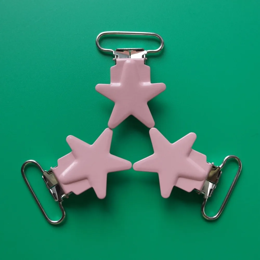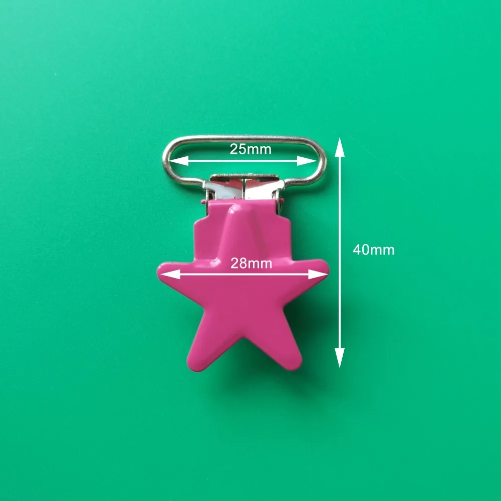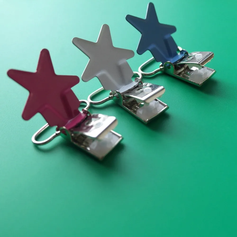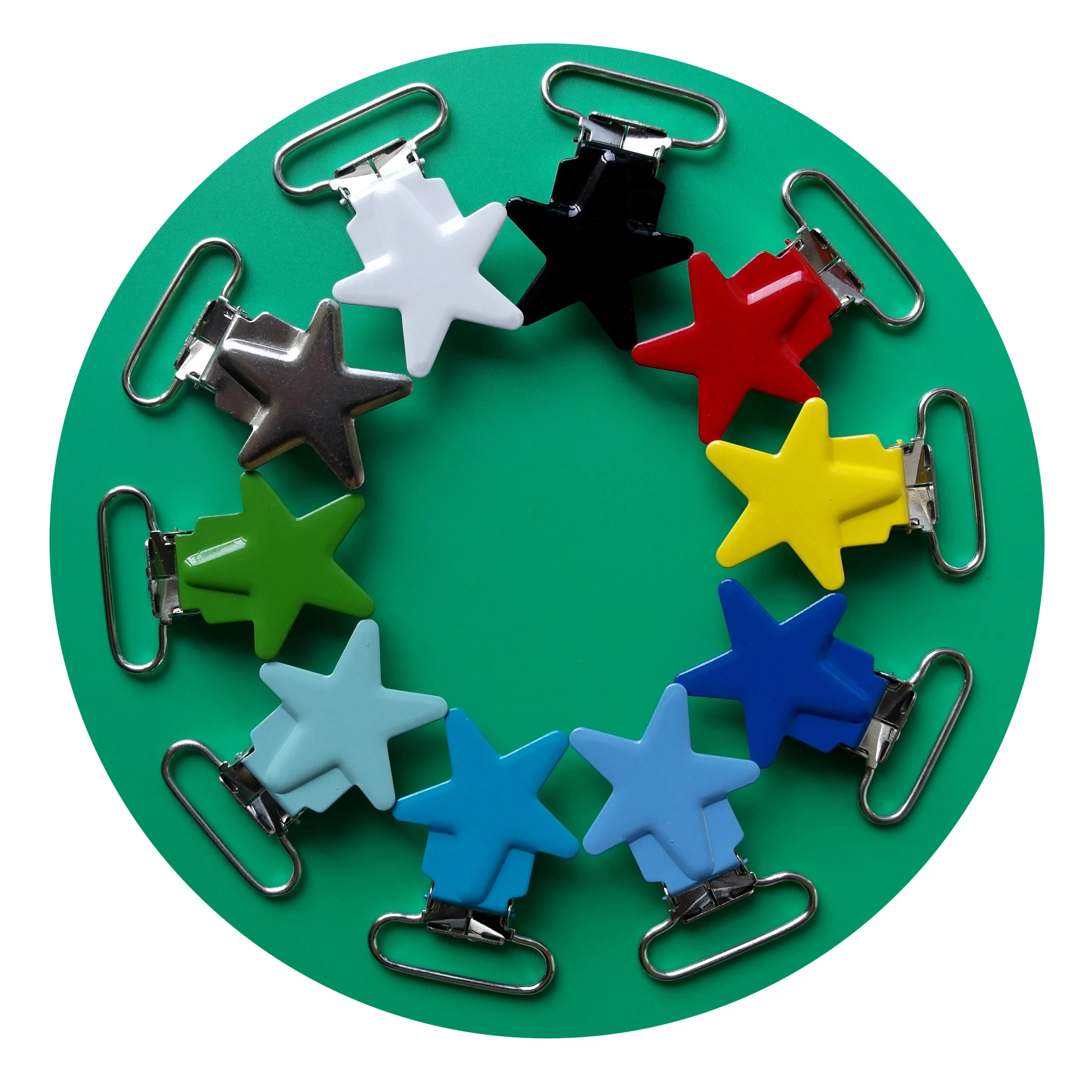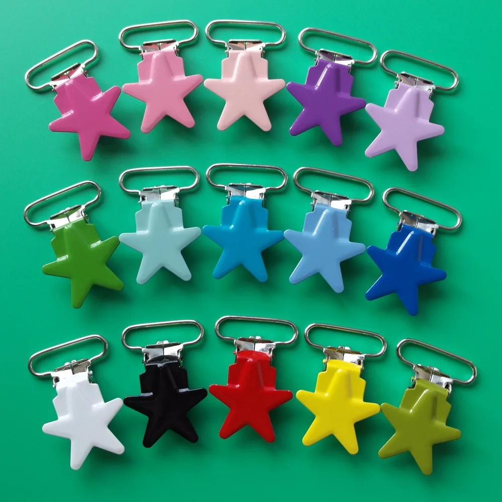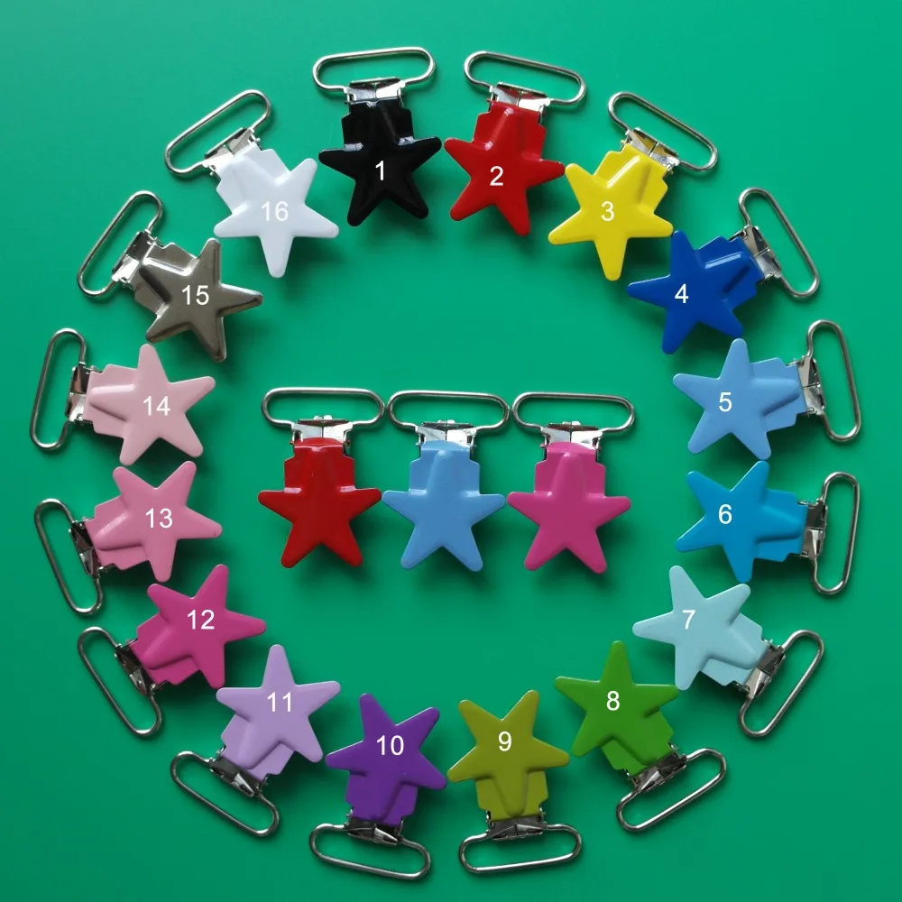 48pcs 16 Colors Star Pacifier Chain Holders Enamel Metal Suspender Clips Dummy Soother Baby Pacifier Clip With Plastic Teeth