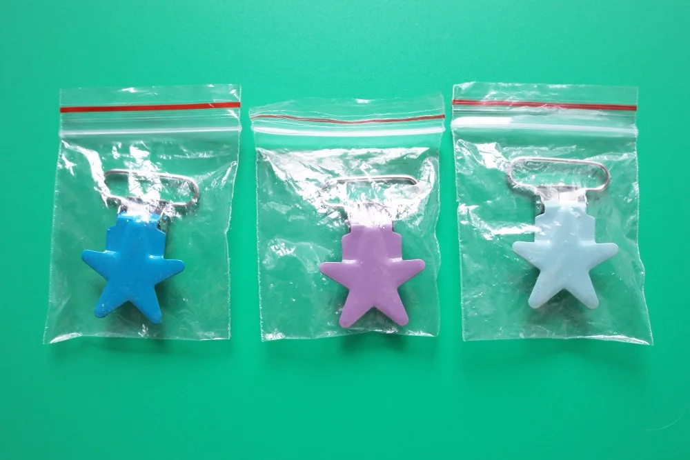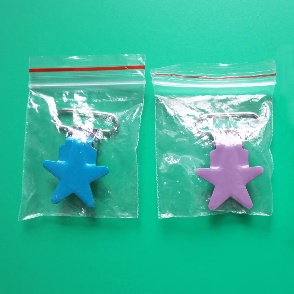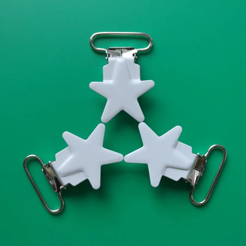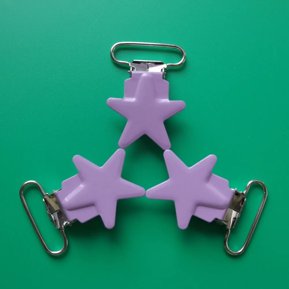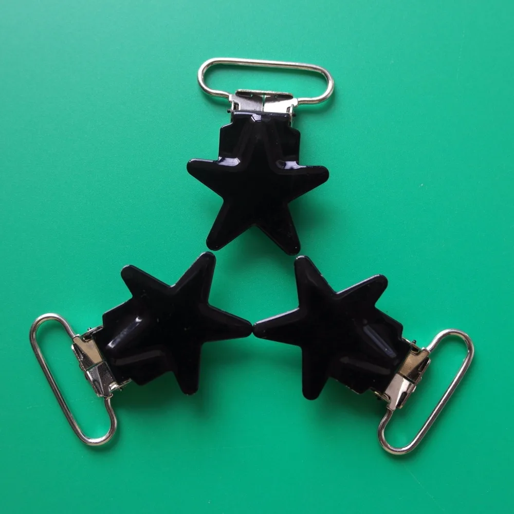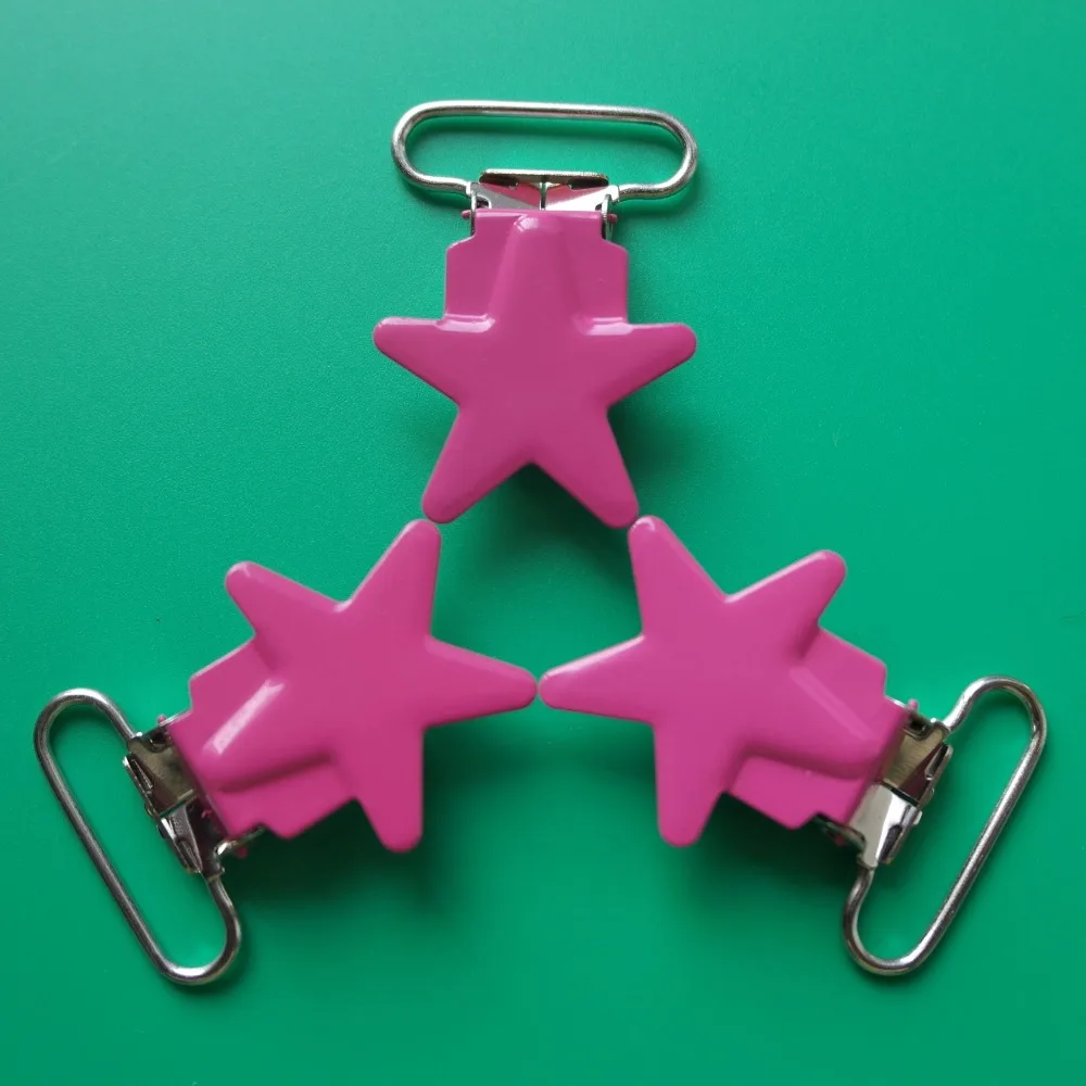 48pcs 16 Colors Star Pacifier Chain Holders Enamel Metal Suspender Clips Dummy Soother Baby Pacifier Clip With Plastic Teeth