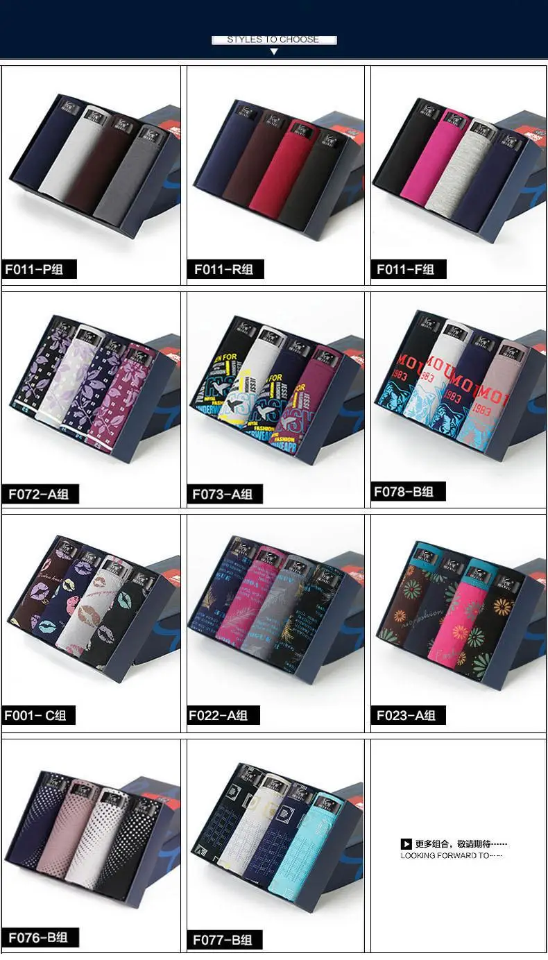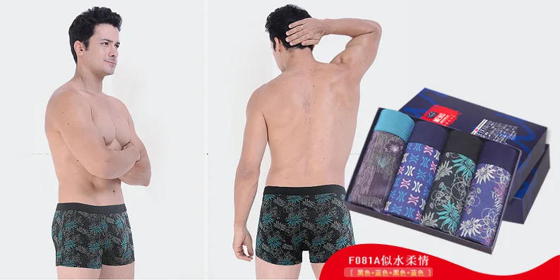 4pcs Box Fashion Pinting Mens Underwear Shorts Men Boxer Pants Men’s Brand Under Underpants Cueca Masculina Free shipping
