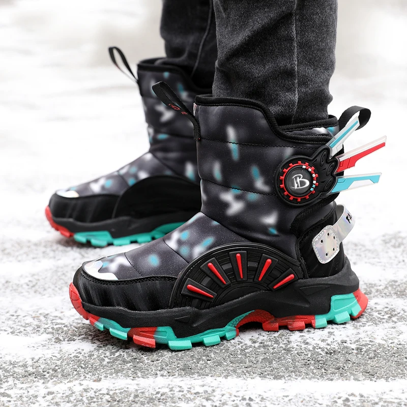 5-12y High Quality Boys Girl Winter Snow Boots Fur Warm Cotton Shoes Leather Autumn Waterproof Kids Footwear Child Sneaker Boots