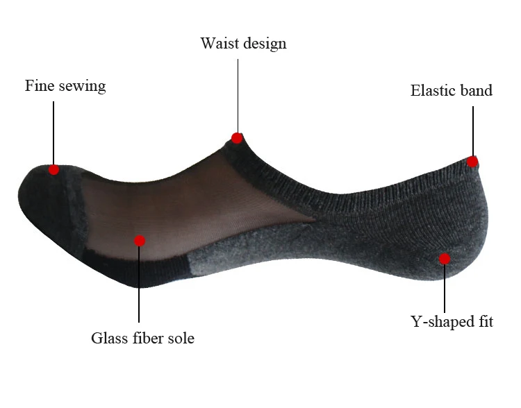 Mulit-color Black Breathable No Show Liner Crystal Glass Calzini