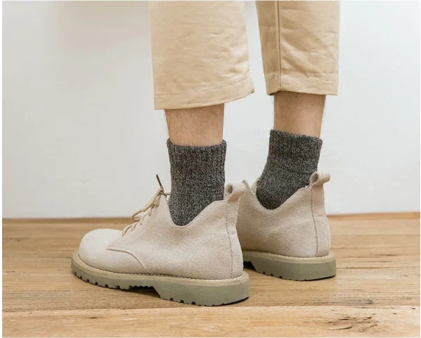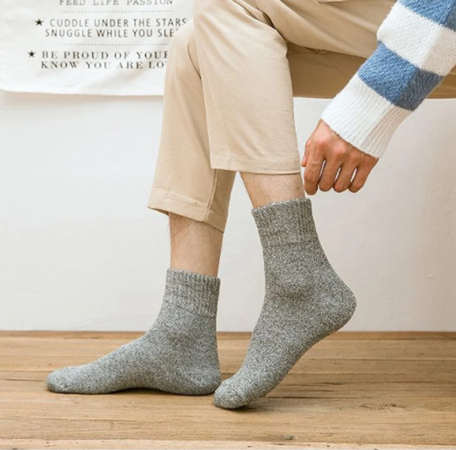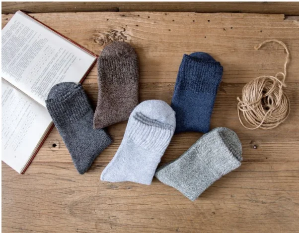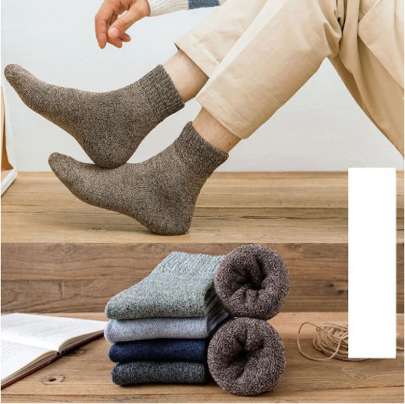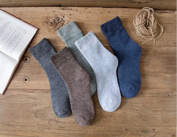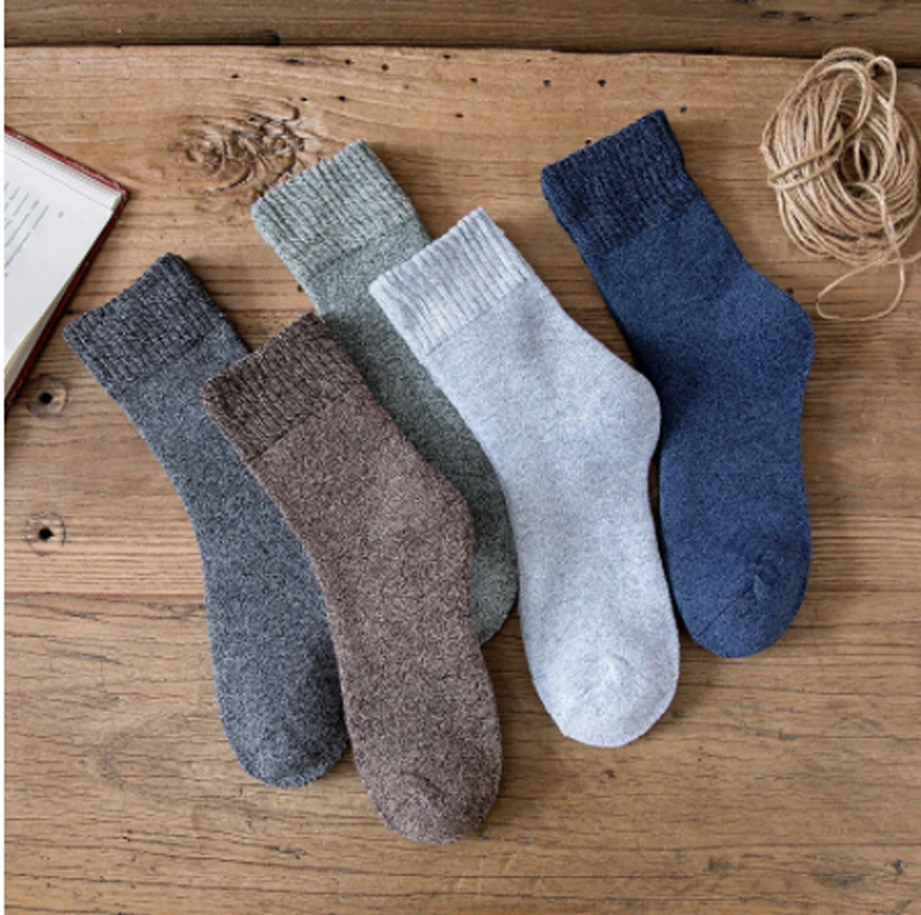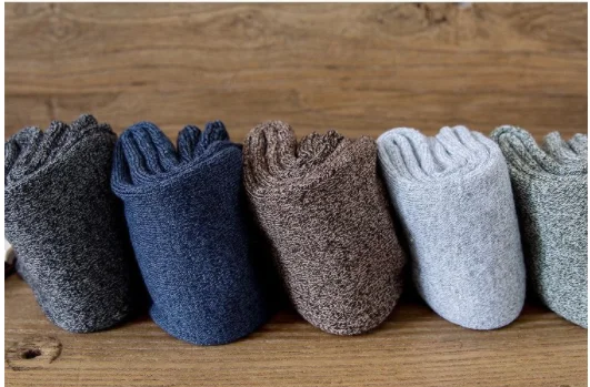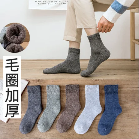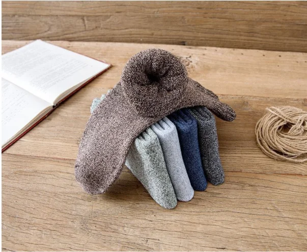 5 Pairs Cotton Men Autumn Winter Thick Socks Keep Warm Thermal Terry Bussiness Solid Casual Crew