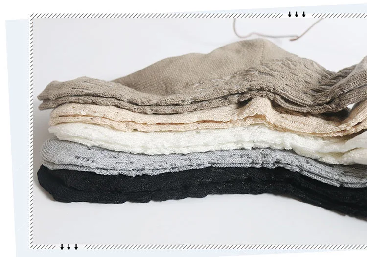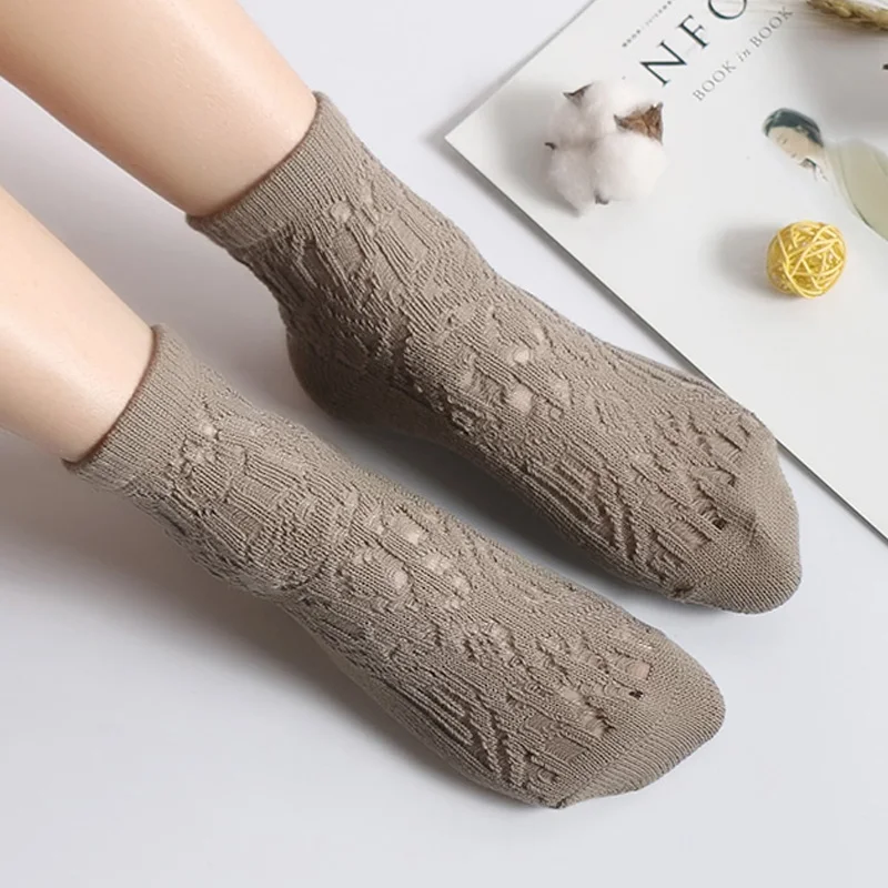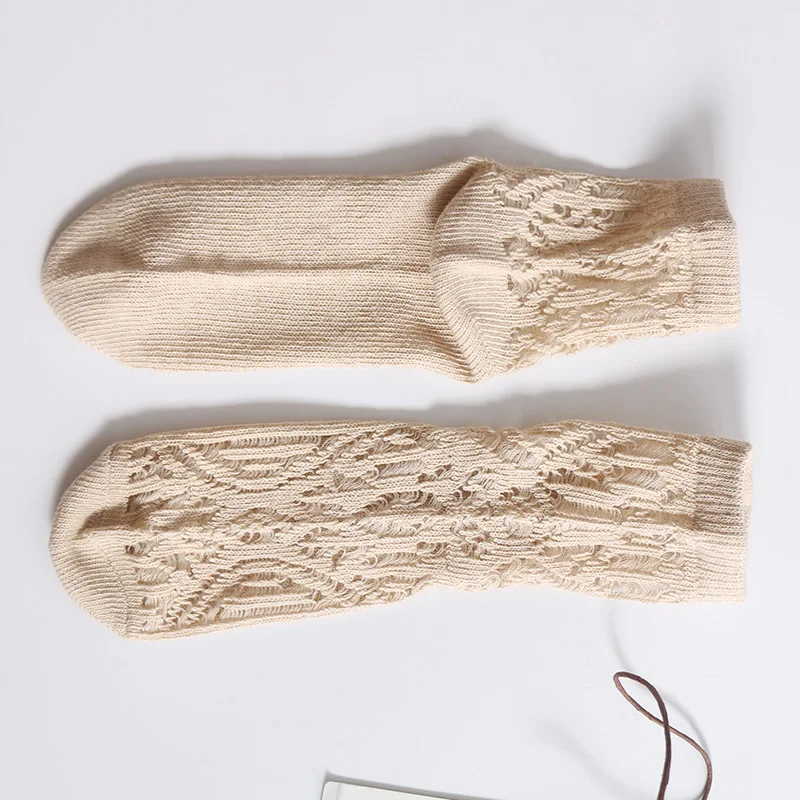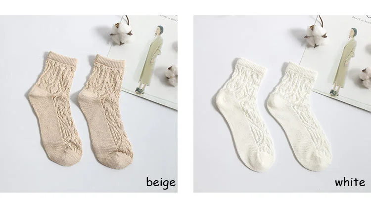 5 Pairs/Lot Winter Women Harajuk 90% Cotton Hollow-out Coarse Yarn Crew Socks Femme Beige/Camel Pure Color Tube Meias De Mujer