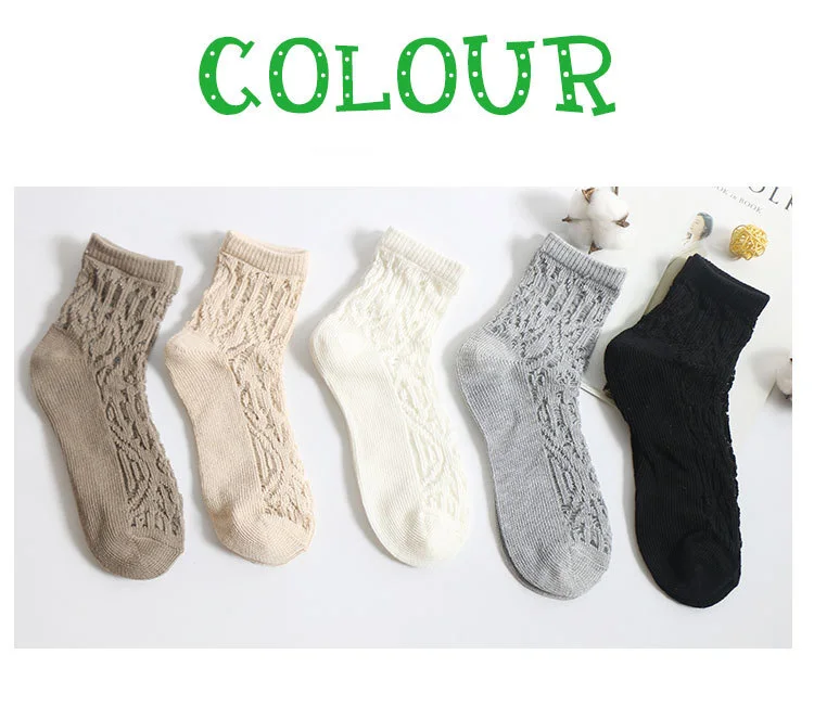 5 Pairs/Lot Winter Women Harajuk 90% Cotton Hollow-out Coarse Yarn Crew Socks
