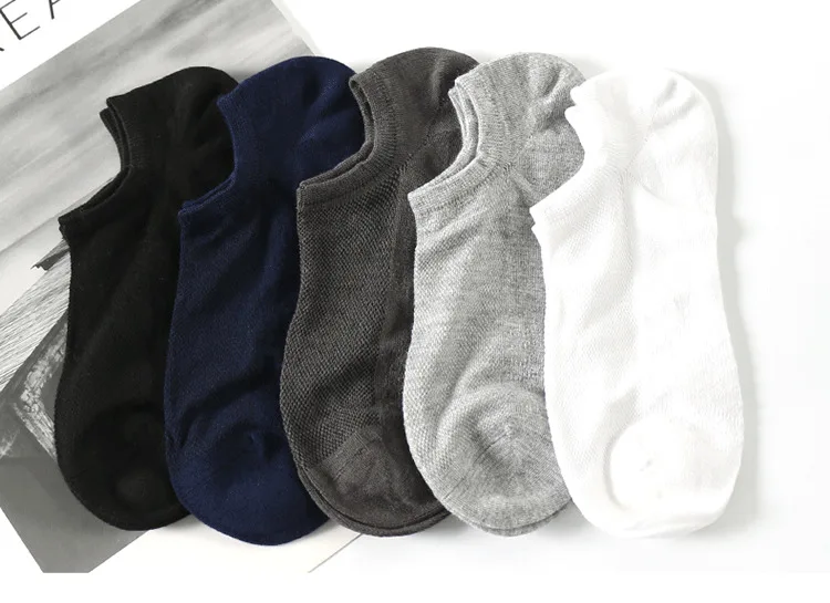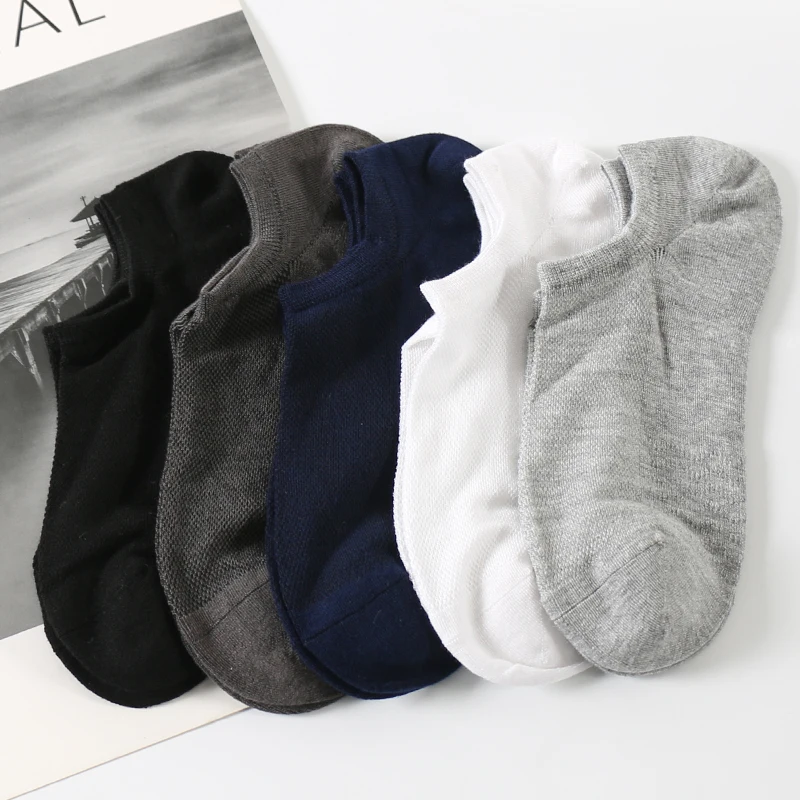 5 Pairs  Mens Summer Thin Modal Low Cut Mesh Boat Socks Slippers