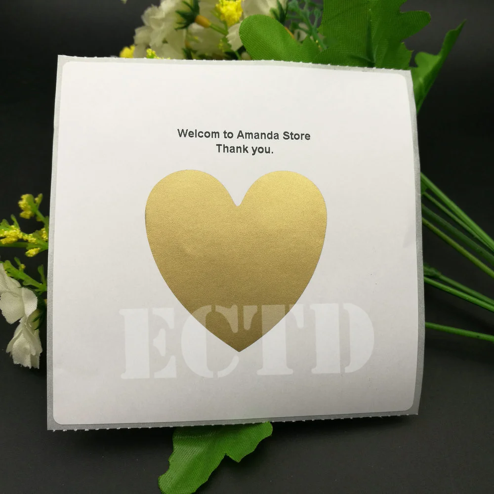 500Pcs Scratch Off Sticker 50x50mm Heart Shape Gold Color Blank For Secret Code Cover Home Game Wedding Message postcard