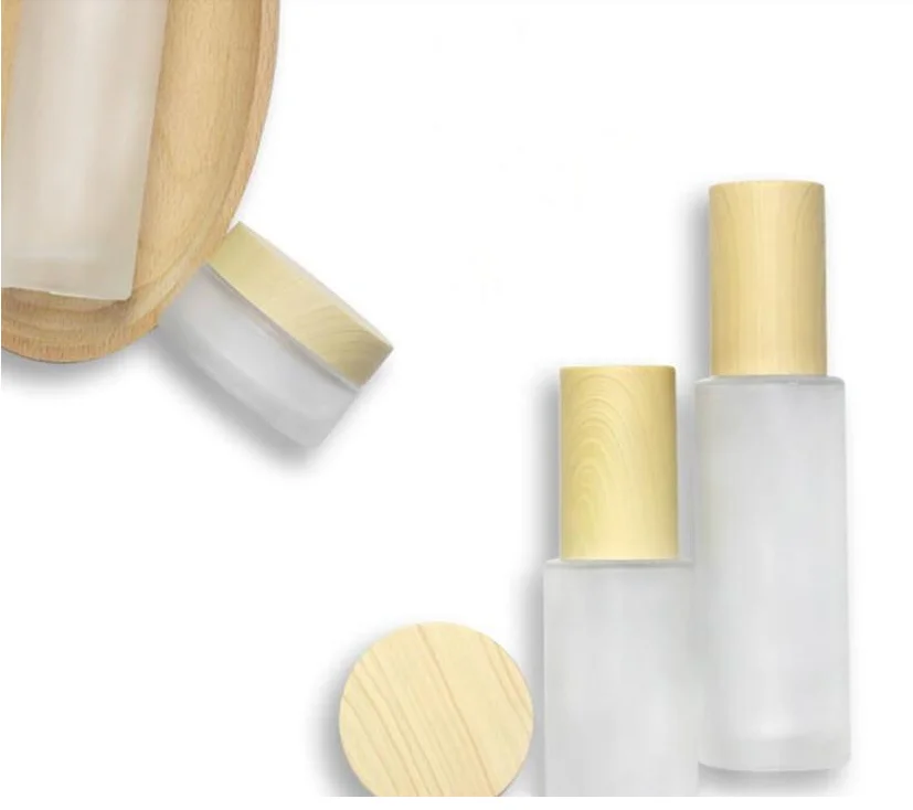 50ml jar Frosted Glass Cosmetic Jar Bottle Face Cream Pot Lotion Spray Pump Bottles with Plastic Imitation Bamboo Lids