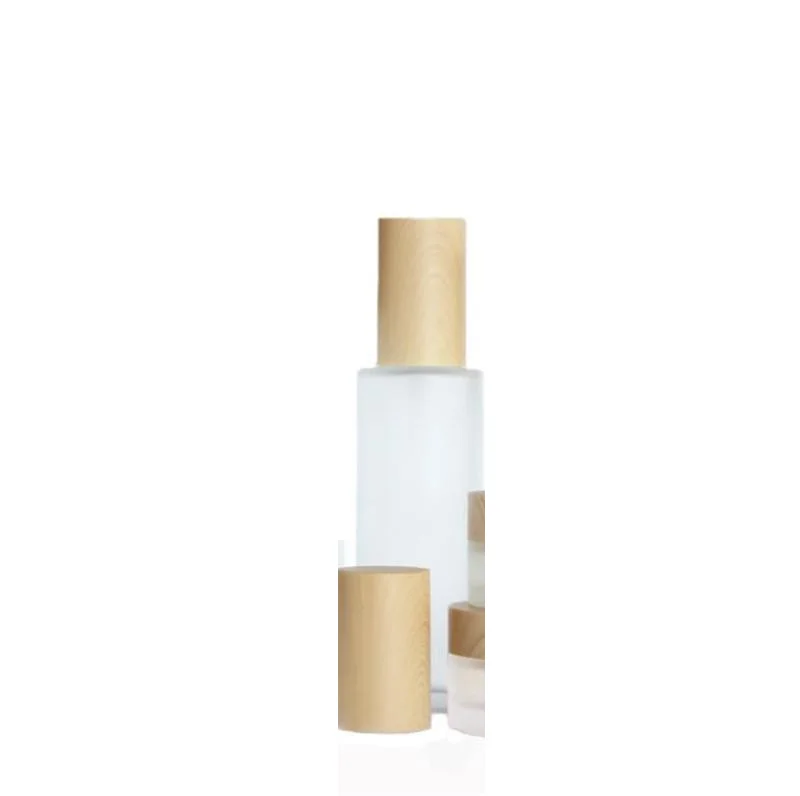 50ml spray pump bottle Glass Cosmetic Jar Bottle Face Cream Pot Lotion Spray Pump Bottles with Plastic Imitation Bambo