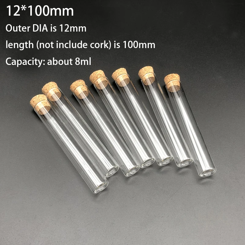 50pcs/Pack 12x100mm Flat bottom Transparent Glass Test Tube With Cork Stoppers for School Laboratory Experiment
