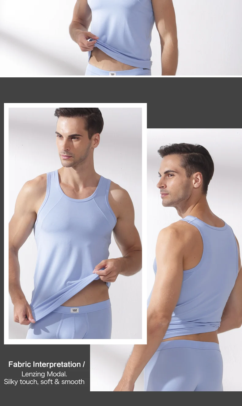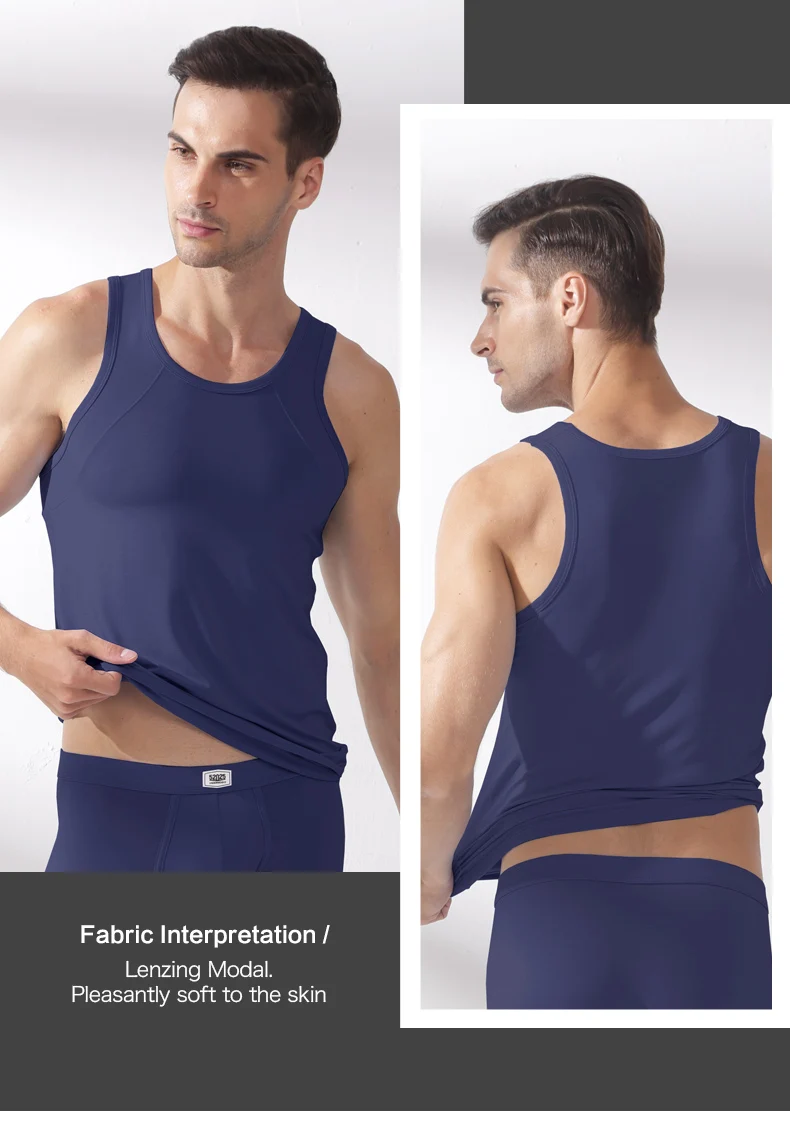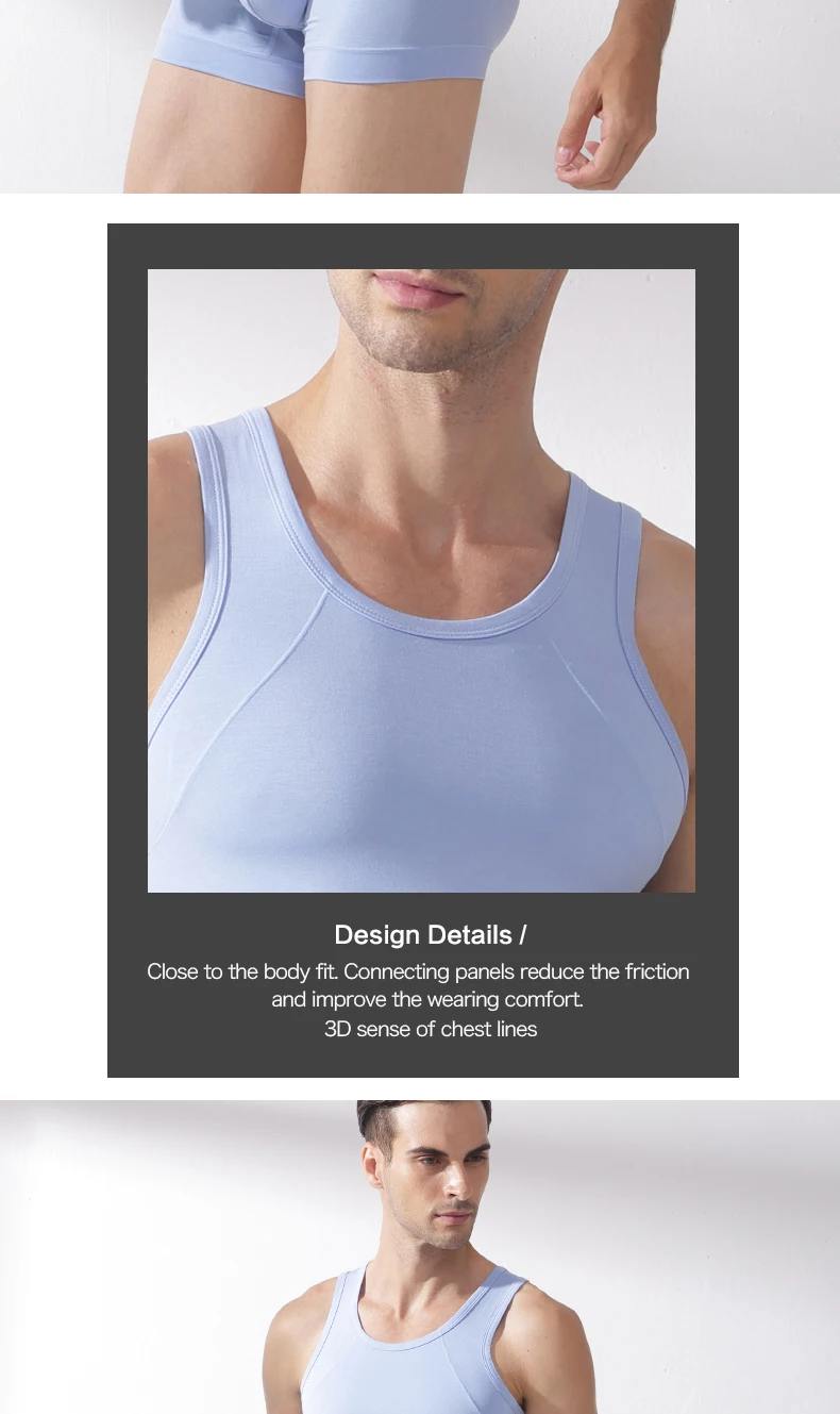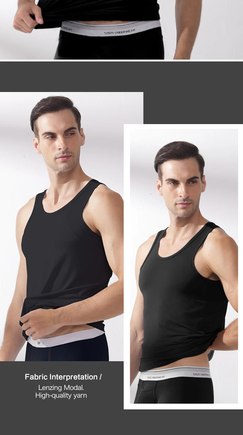 52025 Men Tank Undershirts 2-pack Premium Modal Comfortable Soft Shirt Athletic Sleeveless Undershirt Breathable Comfy Underwear
