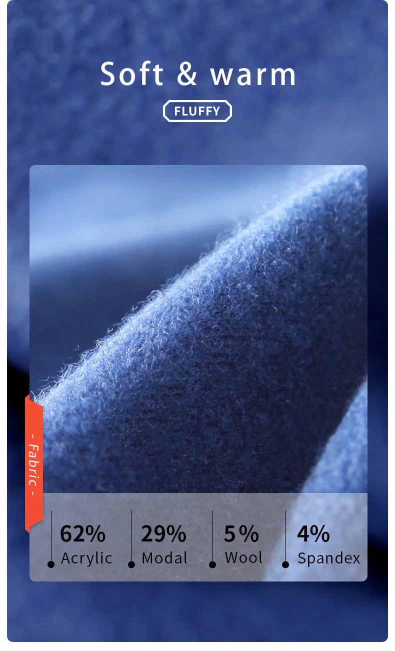 62% Acrylic, 29% Modal, 5% Wool, 4% Spandex