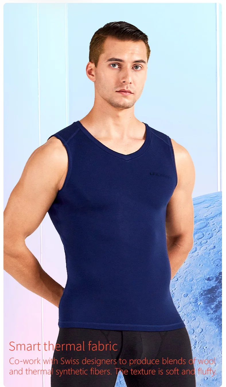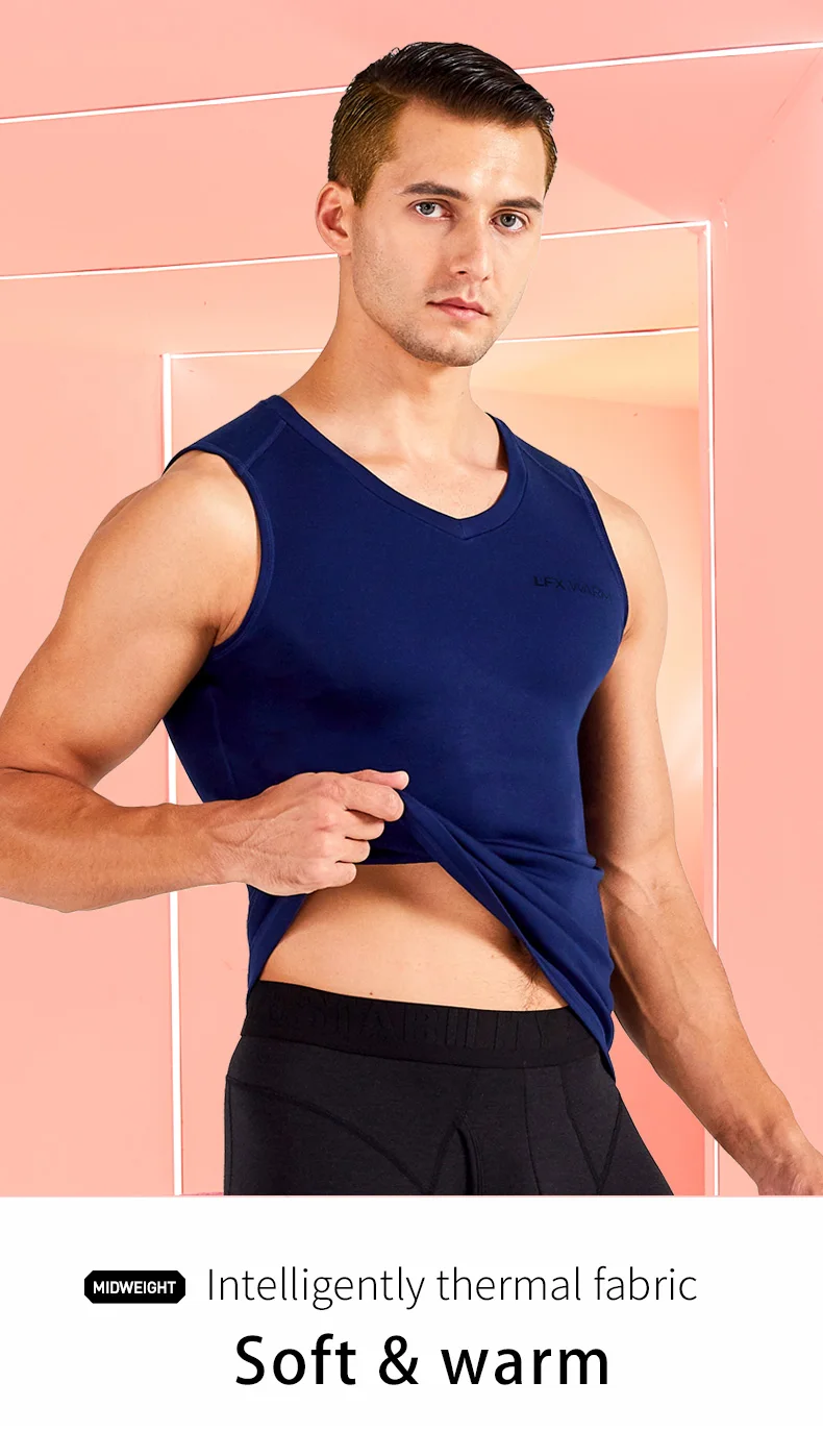 52025 Men Thermal Sleeveless Vest with Wool Sleeveless Top Soft Fleece Comfortable Warm Thermal Undershirt Men Thermal Top Vest