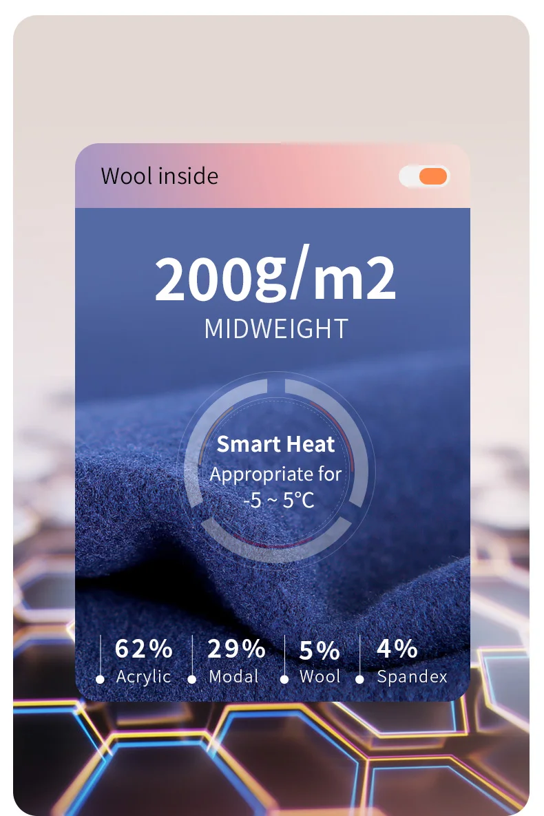 62% Acrylic, 29% Modal, 5% Wool, 4% Spandex