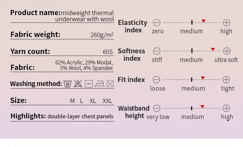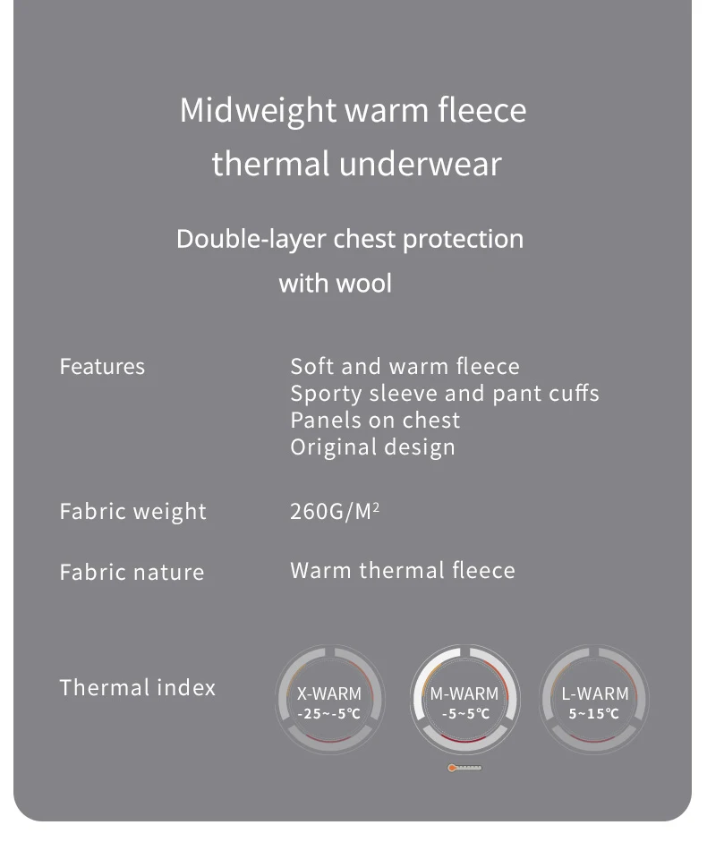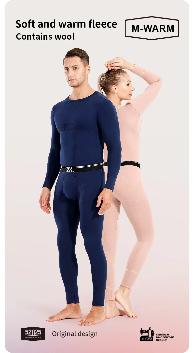 52025 Midweight Thermal Underwear with Wool Warm Base Layer Soft Fleece Warm Comfortable Soft Long Johns Men Thermal Underwear