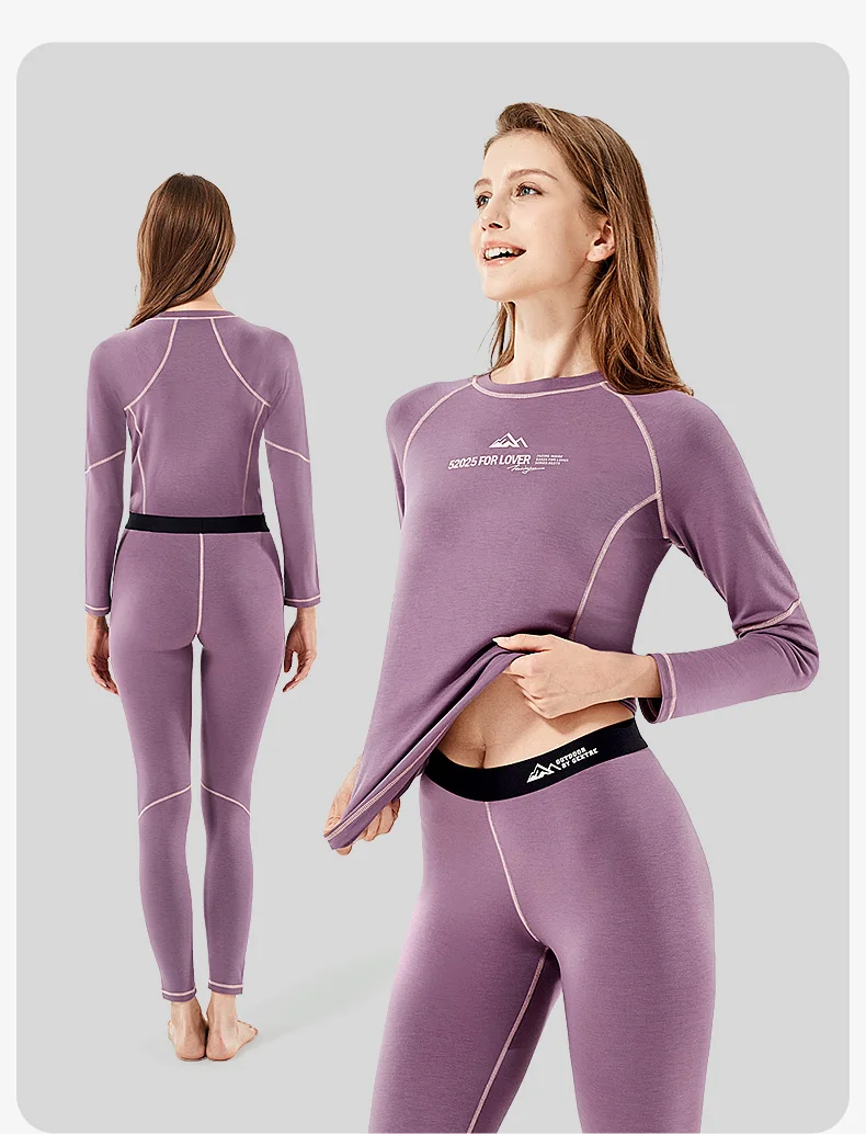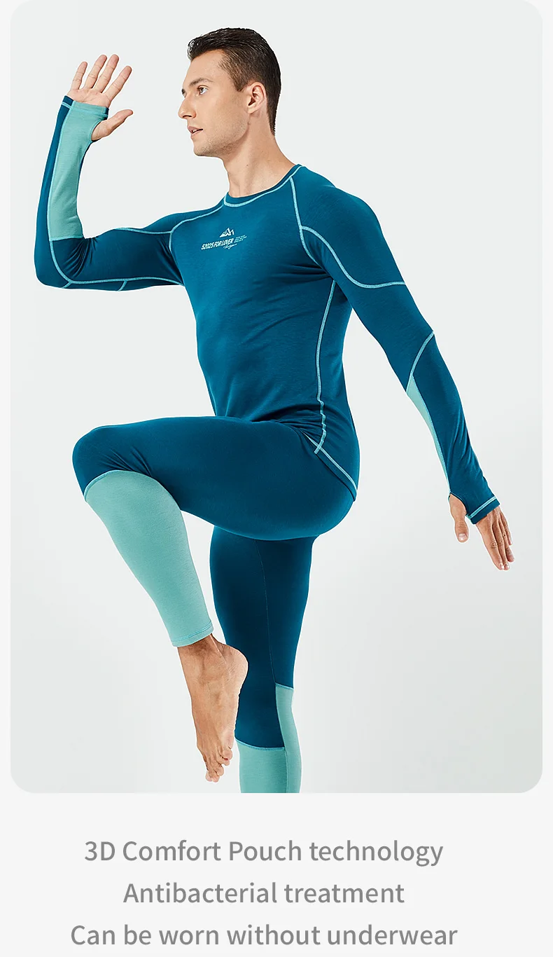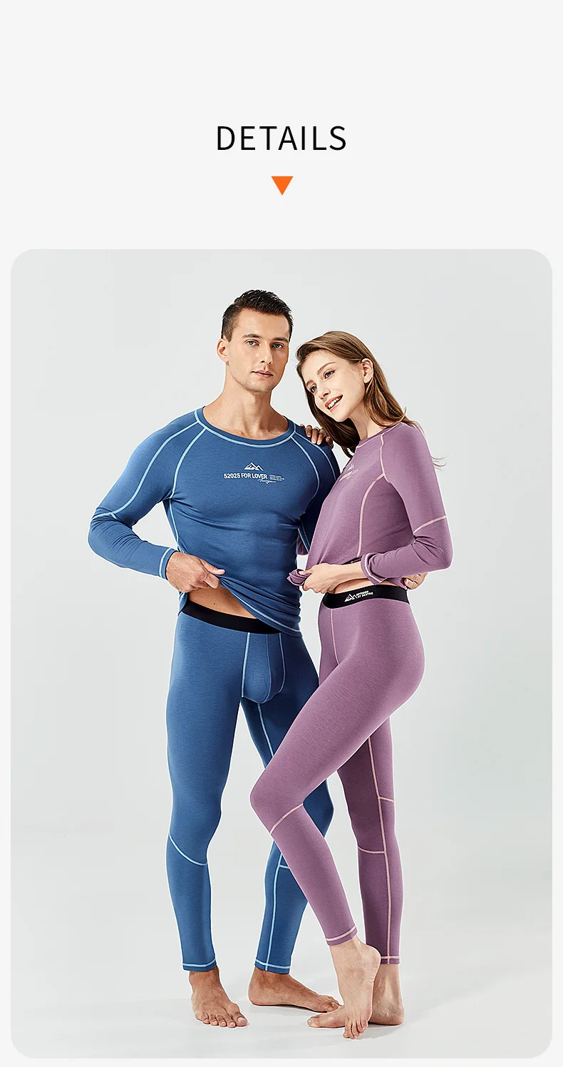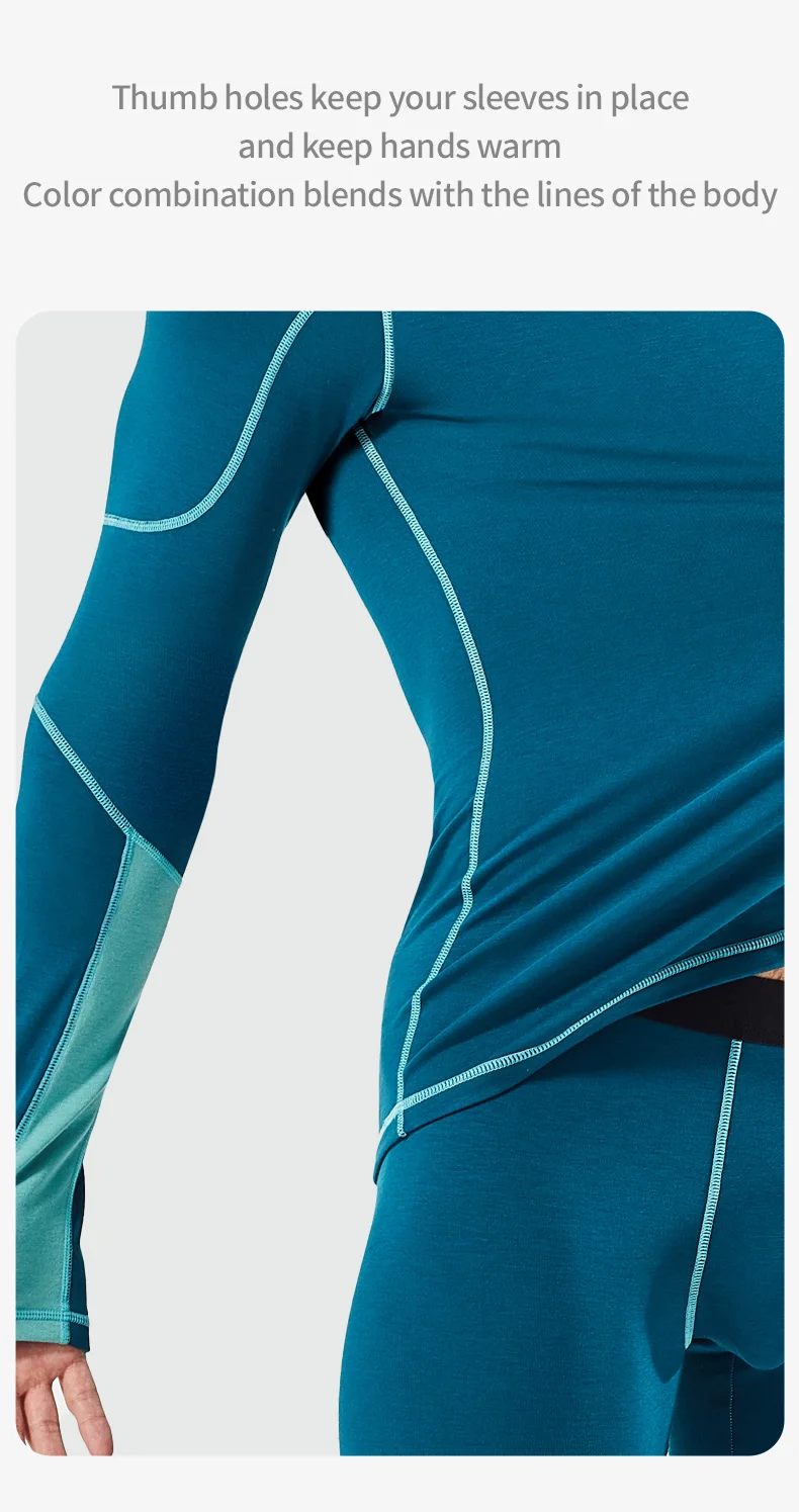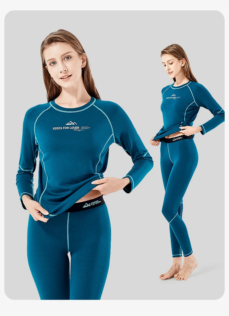 52025 Warm Outdoors Thermal Underwear Men Women Thermal Underwear Dralon Fiber Soft Fleece Thumbhole Sleeves Sporty Long Johns