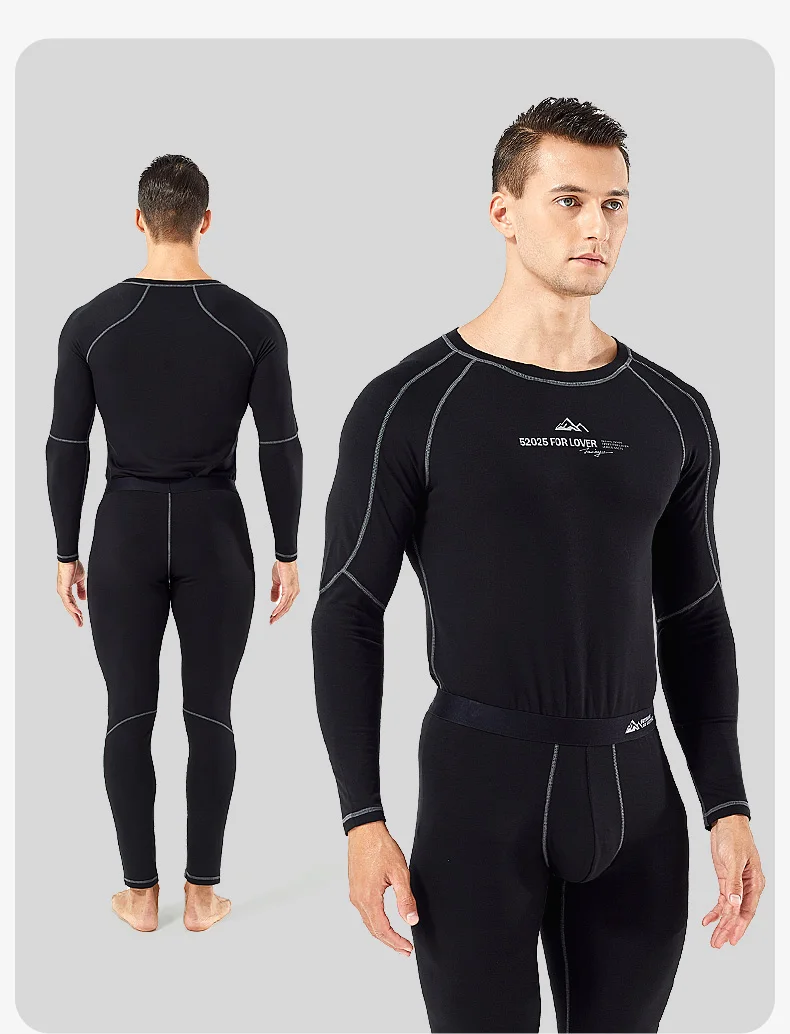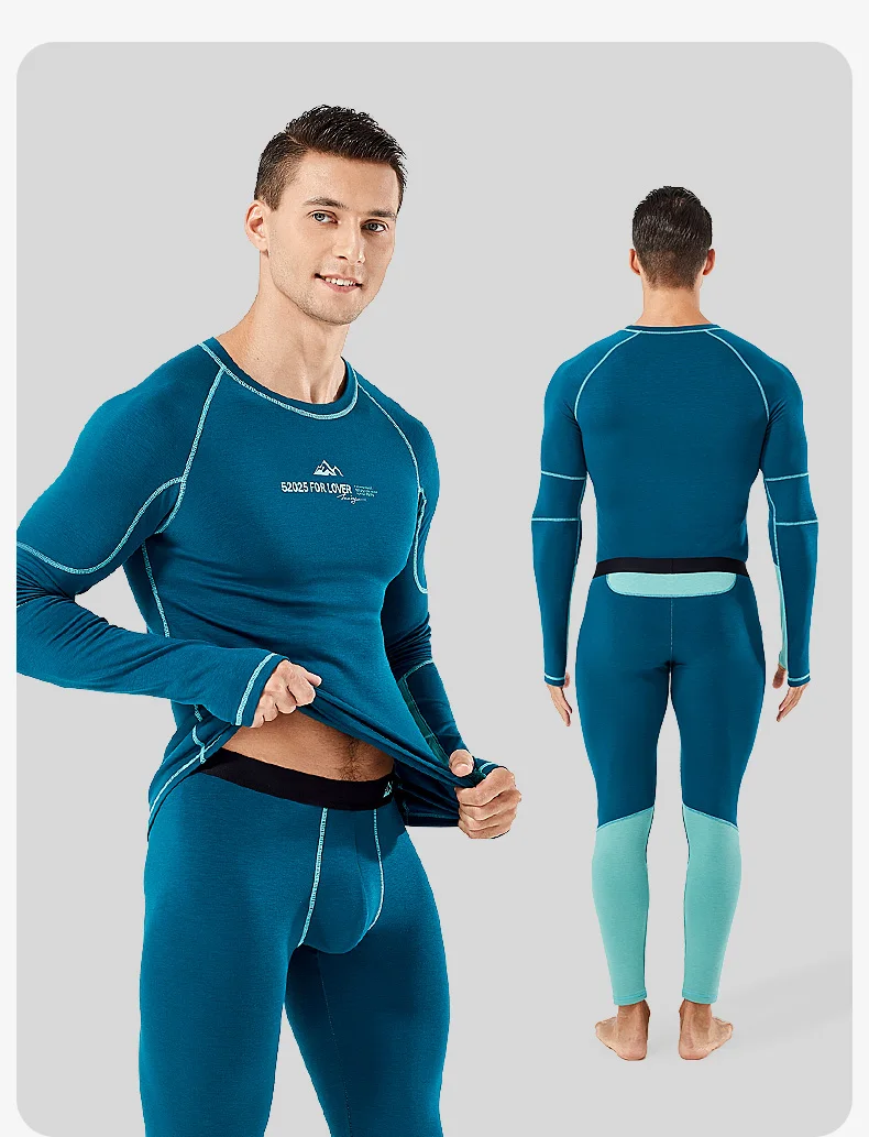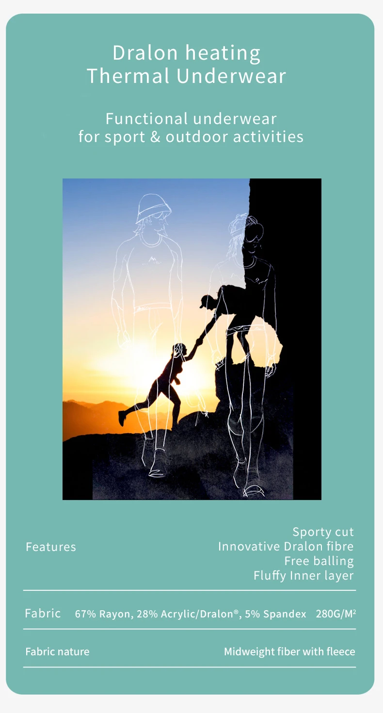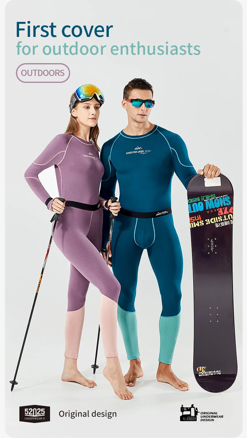 52025 Warm Outdoors Thermal Underwear Men Women Thermal Underwear Dralon Fiber Soft Fleece Thumbhole Sleeves Sporty Long Johns