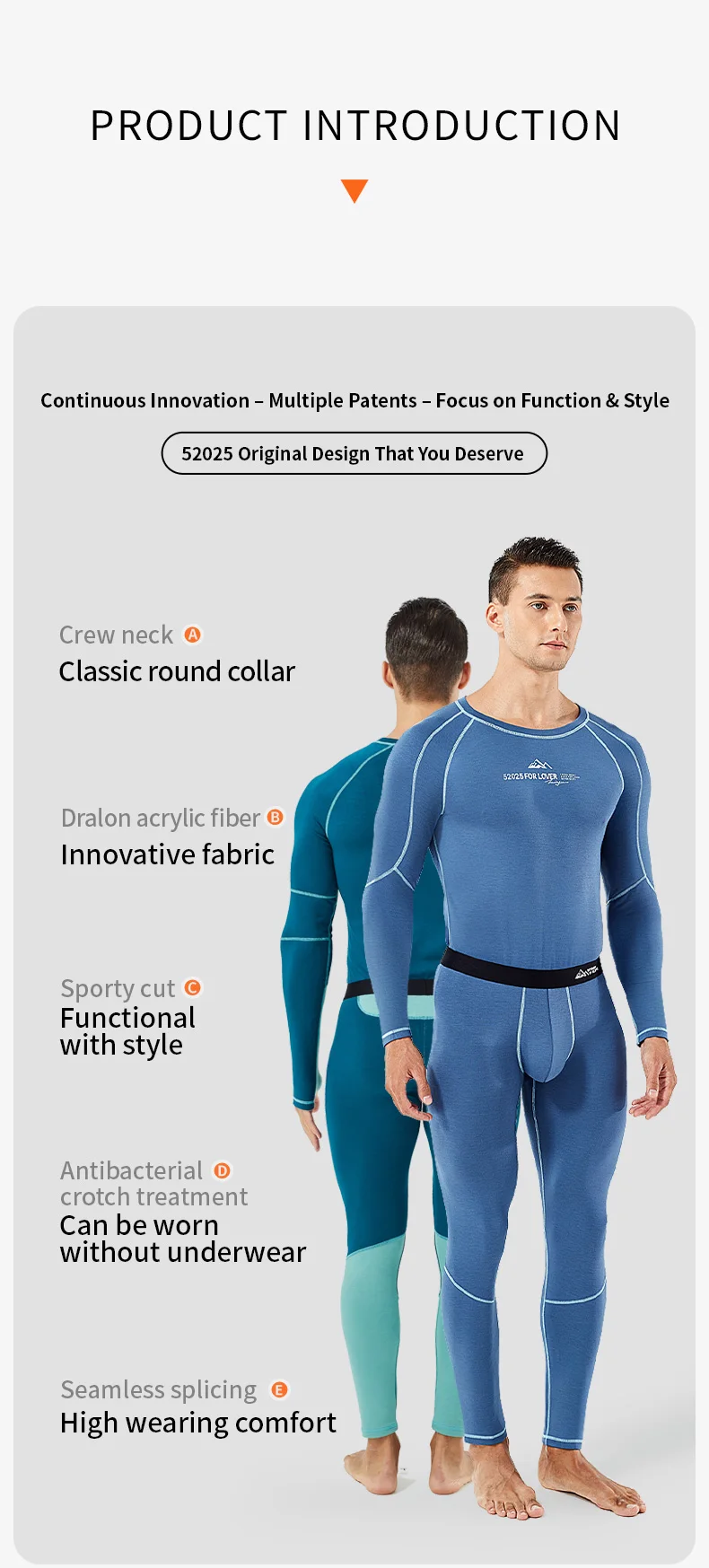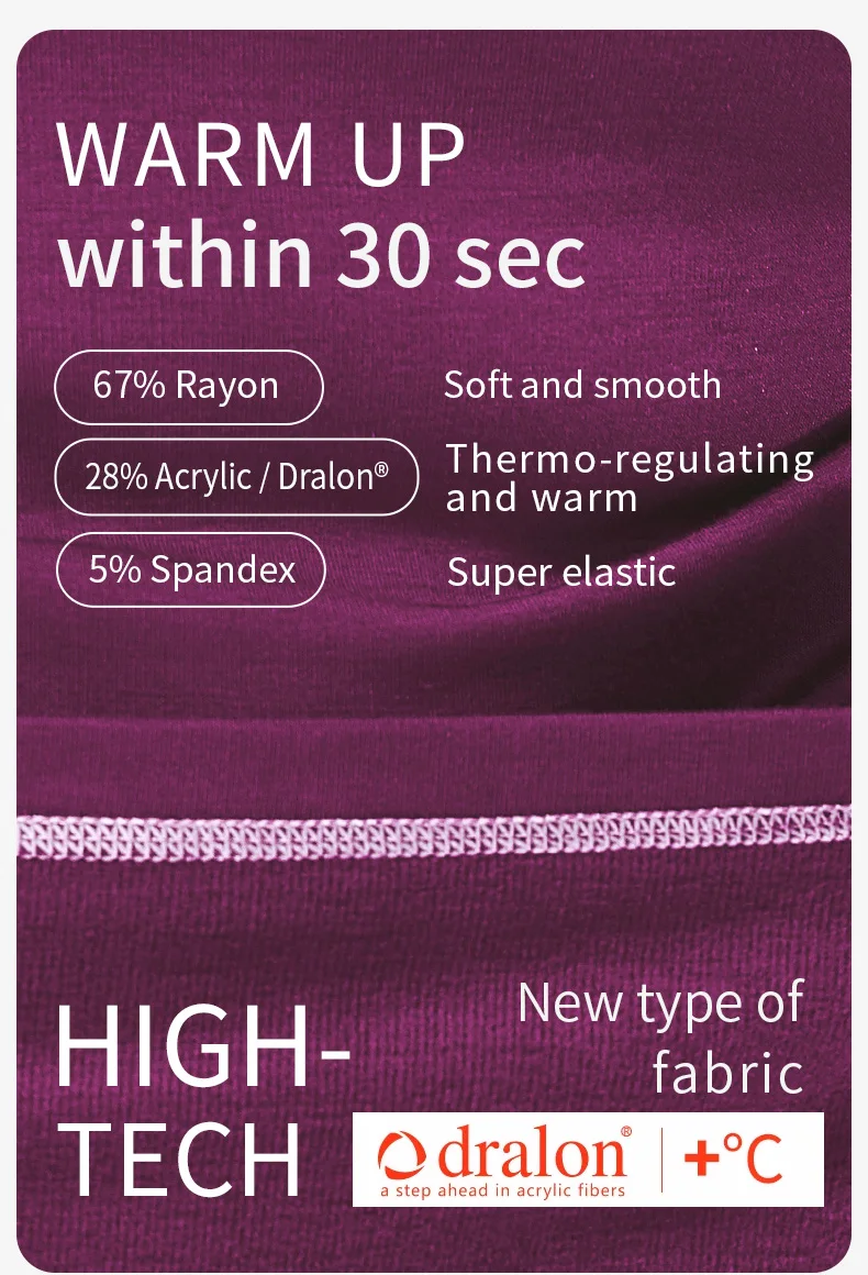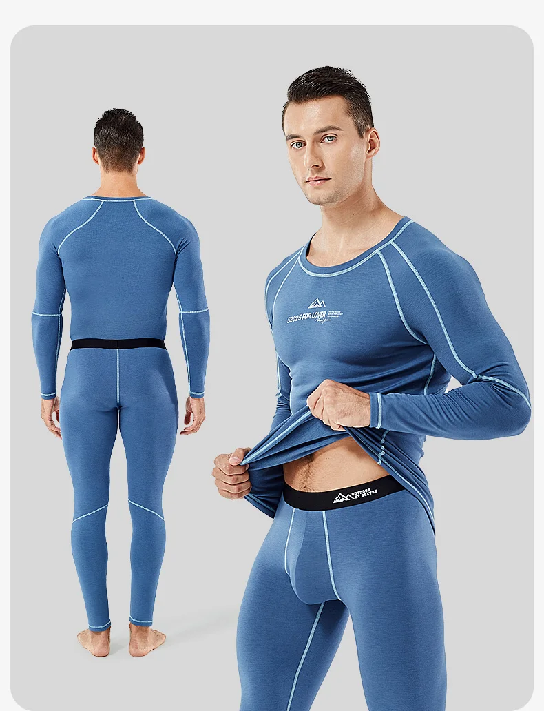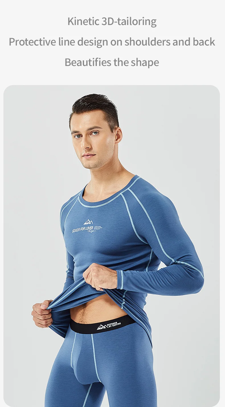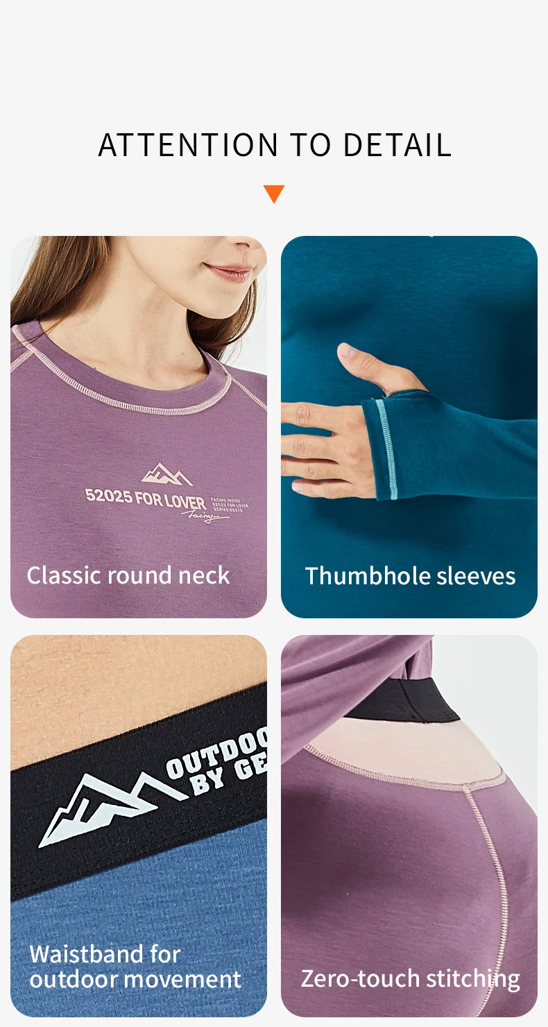 52025 Warm Outdoors Thermal Underwear Men Women Thermal Underwear Dralon Fiber Soft Fleece Thumbhole Sleeves Sporty Long Johns
