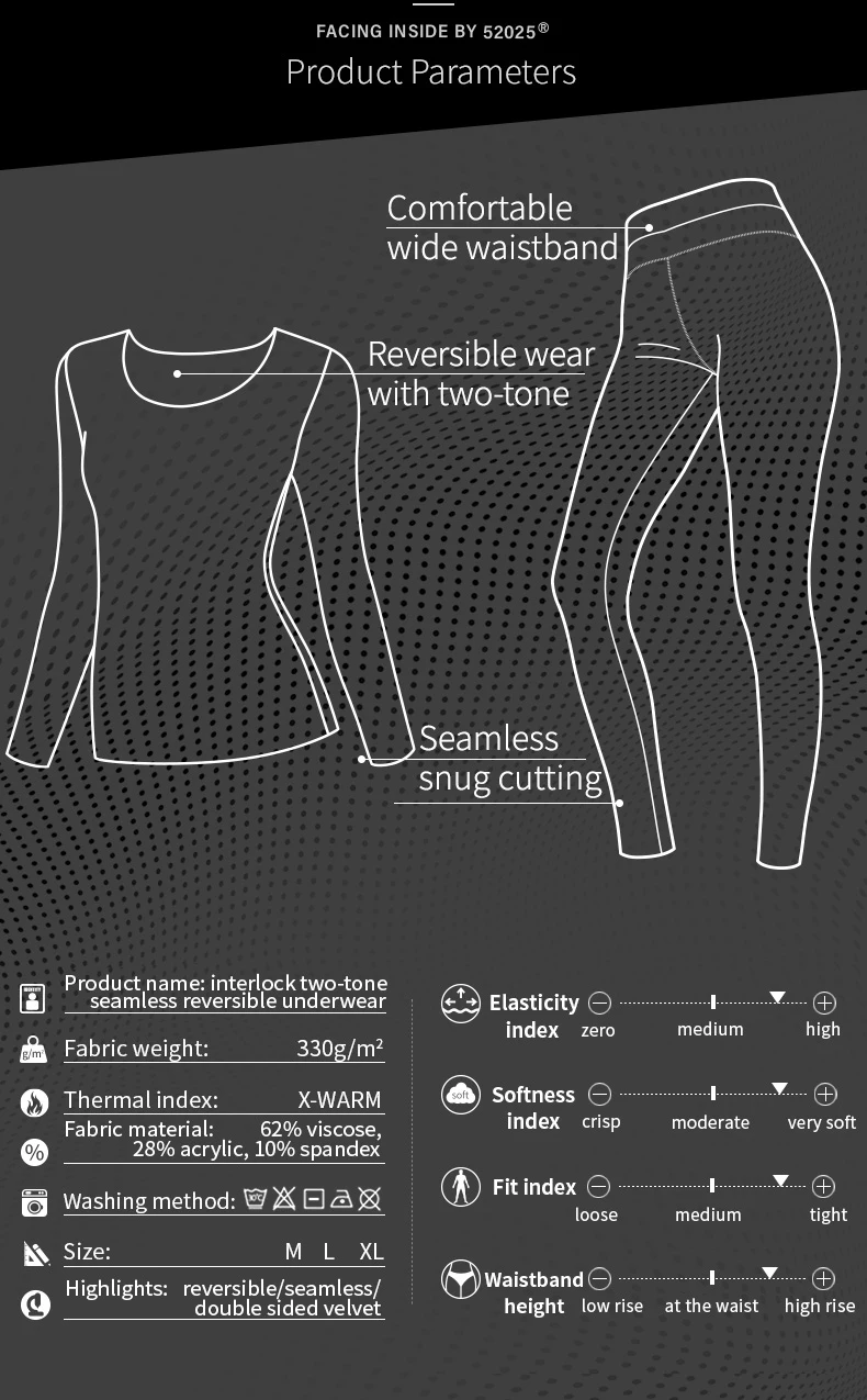 52025 Women Warm Thermal Underwear Reversible Double-sided Seamless Premium Quality Long Johns Women Warm Comfy Thermal Leggings