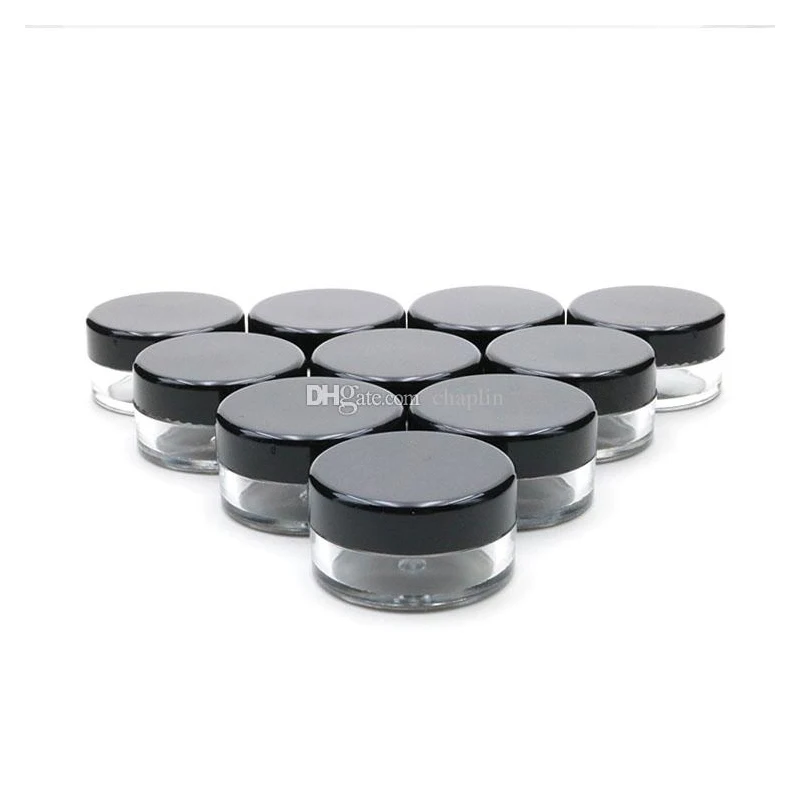 5G 5ML High Quality Empty Clear Container Jar Pot With Black Lids for Powder Makeup, Cream, Lotion, Lip Balm/Gloss, Cosmetic Sam