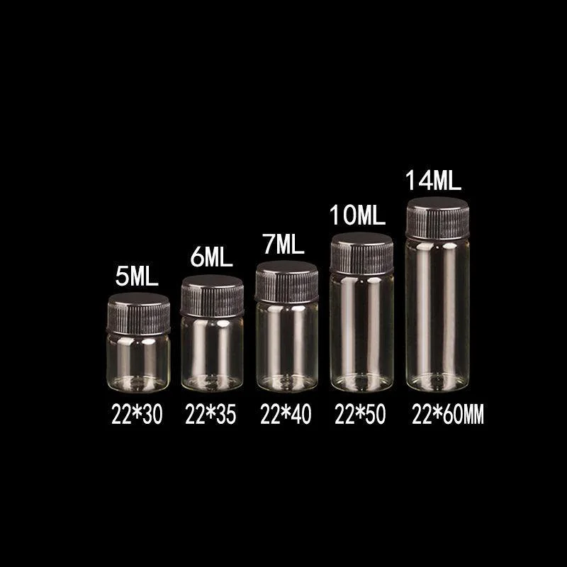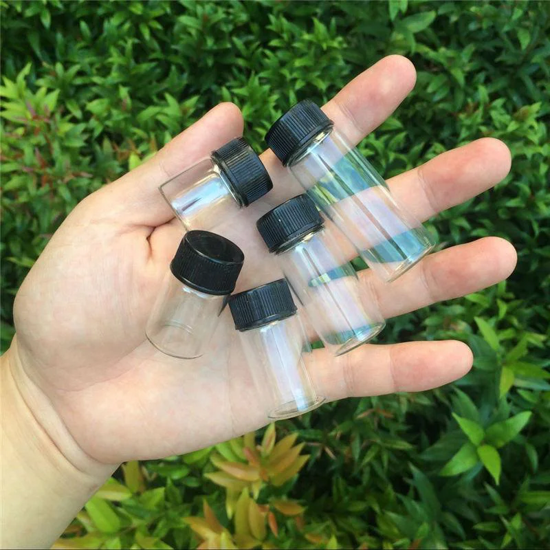5ml 6ml 7ml 10ml 14ml Mini Glass Bottles With Plastic Black Screw Cap Glass Vials Plastic Jars Bottles