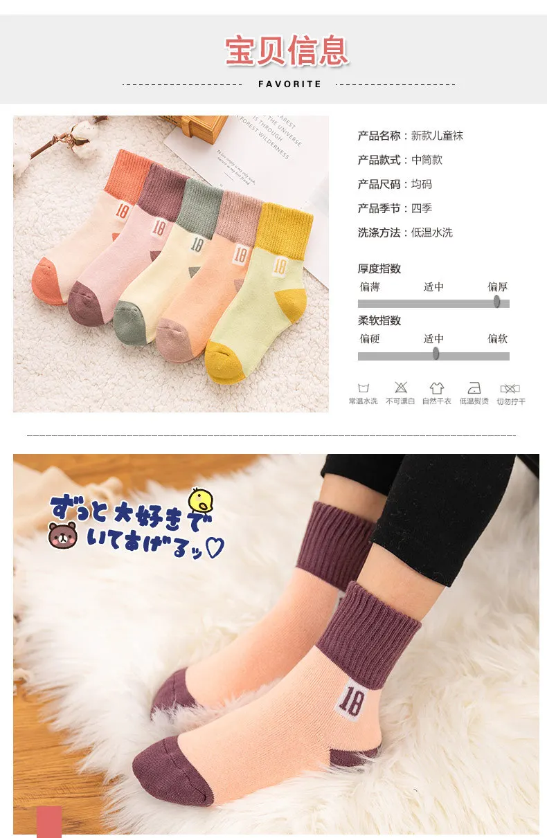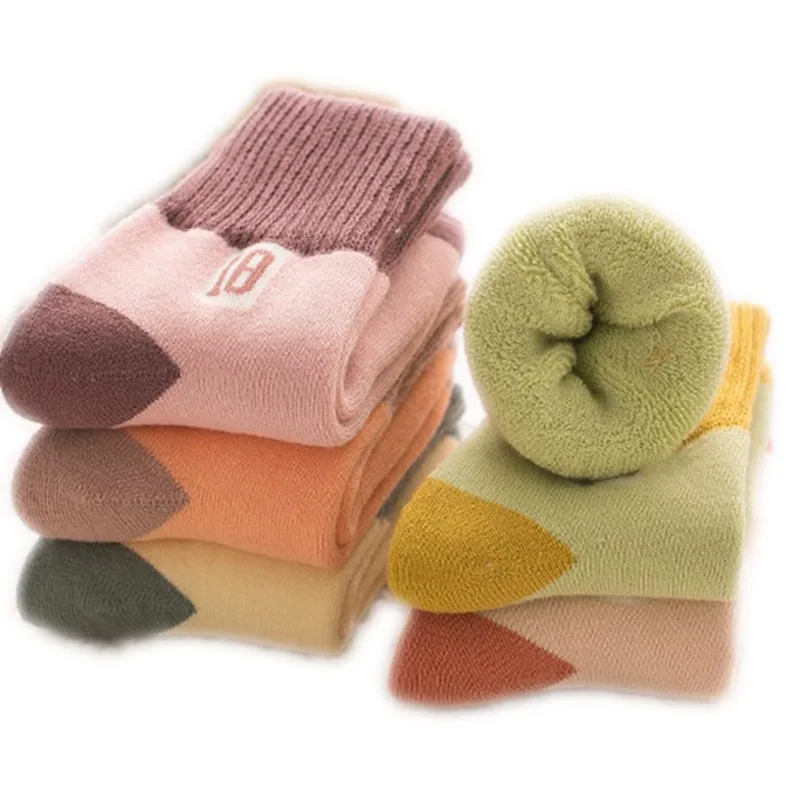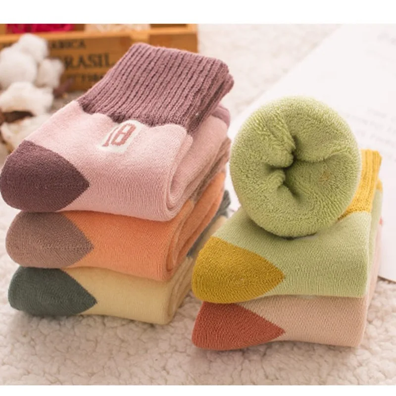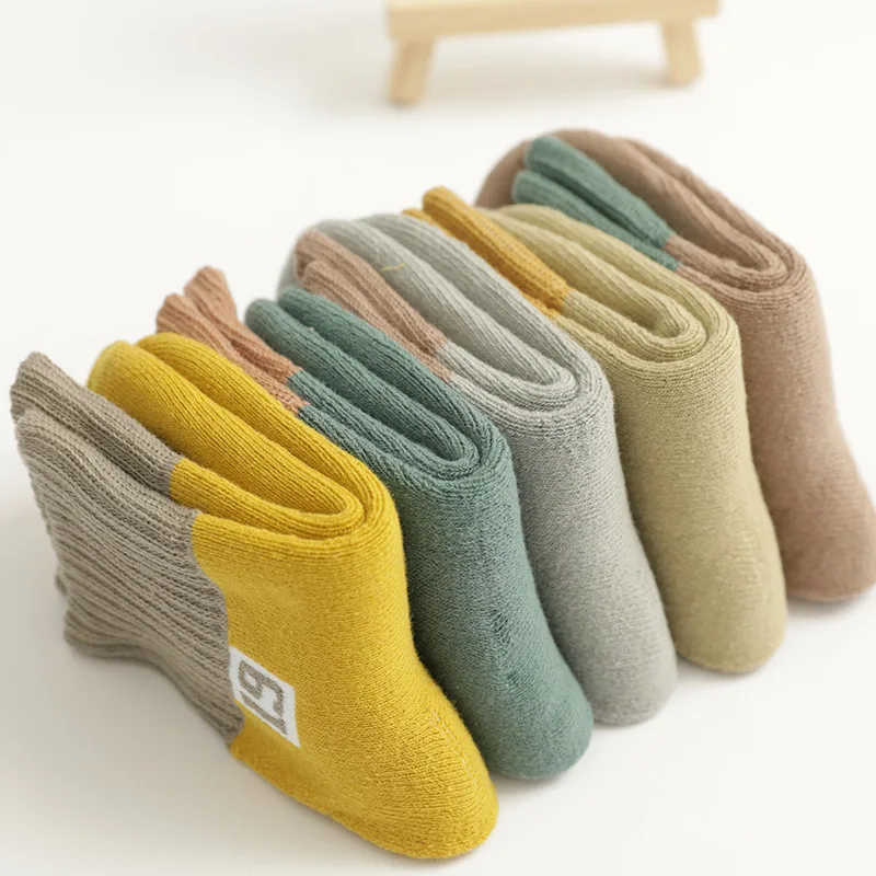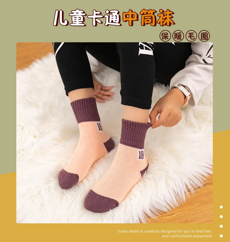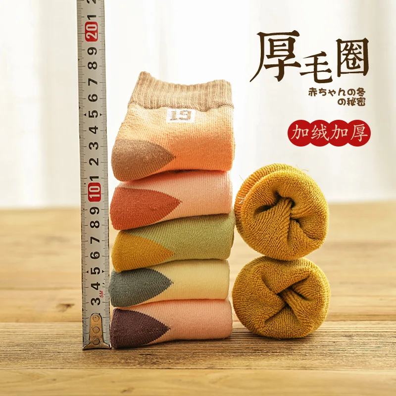 5Pairs/lot Children’s socks girls winter thick warm terry socks Boy’s mid-tube and velvet towel baby floor socks For 1-5T BABY