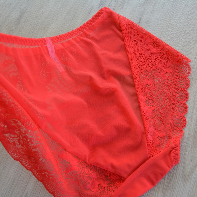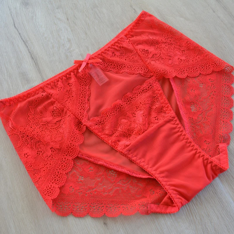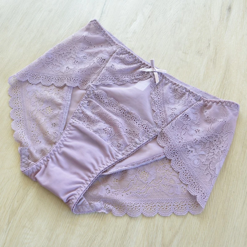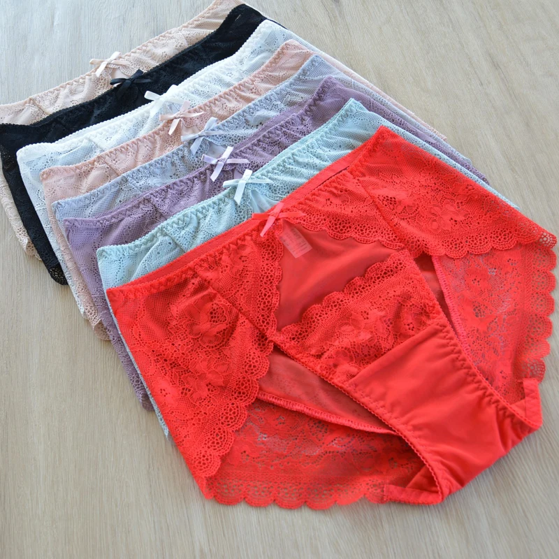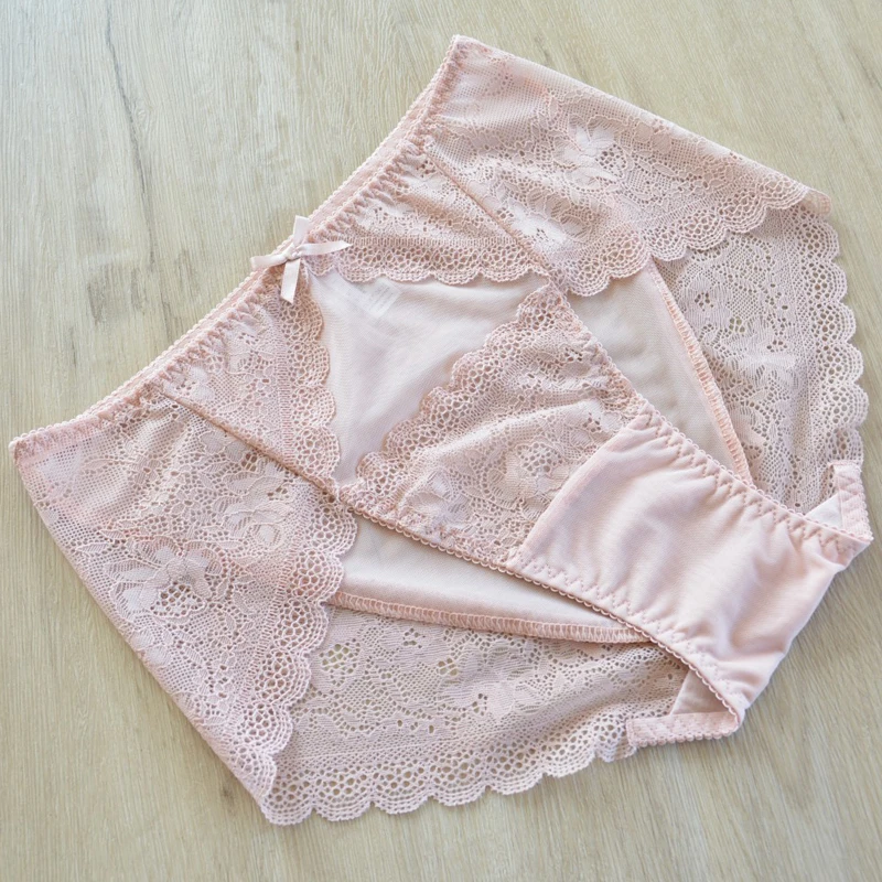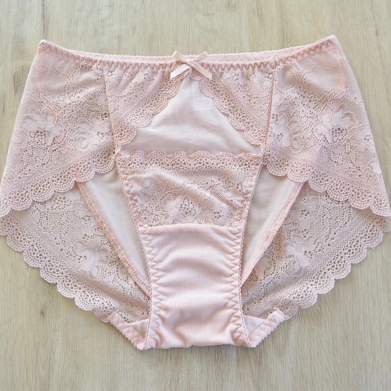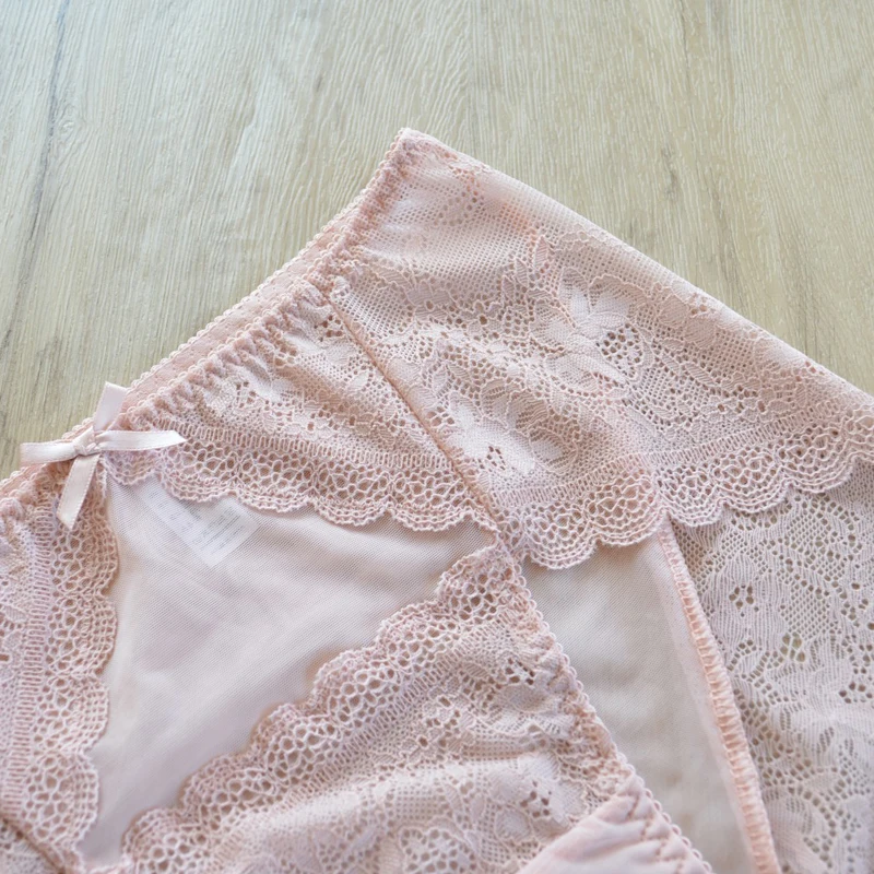 5pc/Pack Woman Underwear Lady Panties Plus Size Panty Lace Sexy Lingeires Mesh Briefs Pink underpants large size briefs