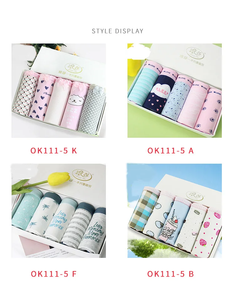 5PCS Panties Ladies Cotton Briefs Underwear Women Knickers Intimates Sexy Lingerie For Female