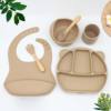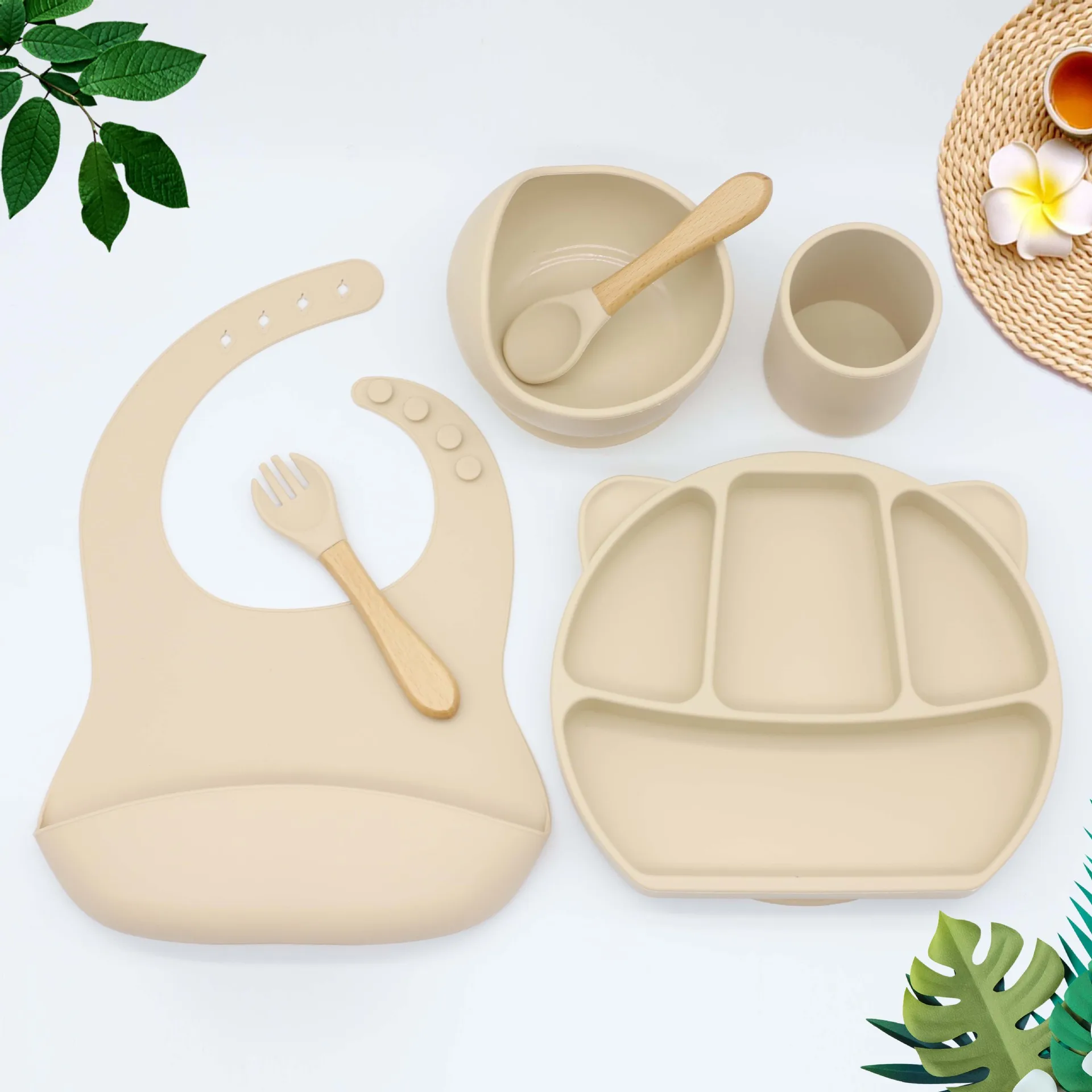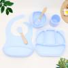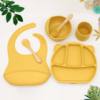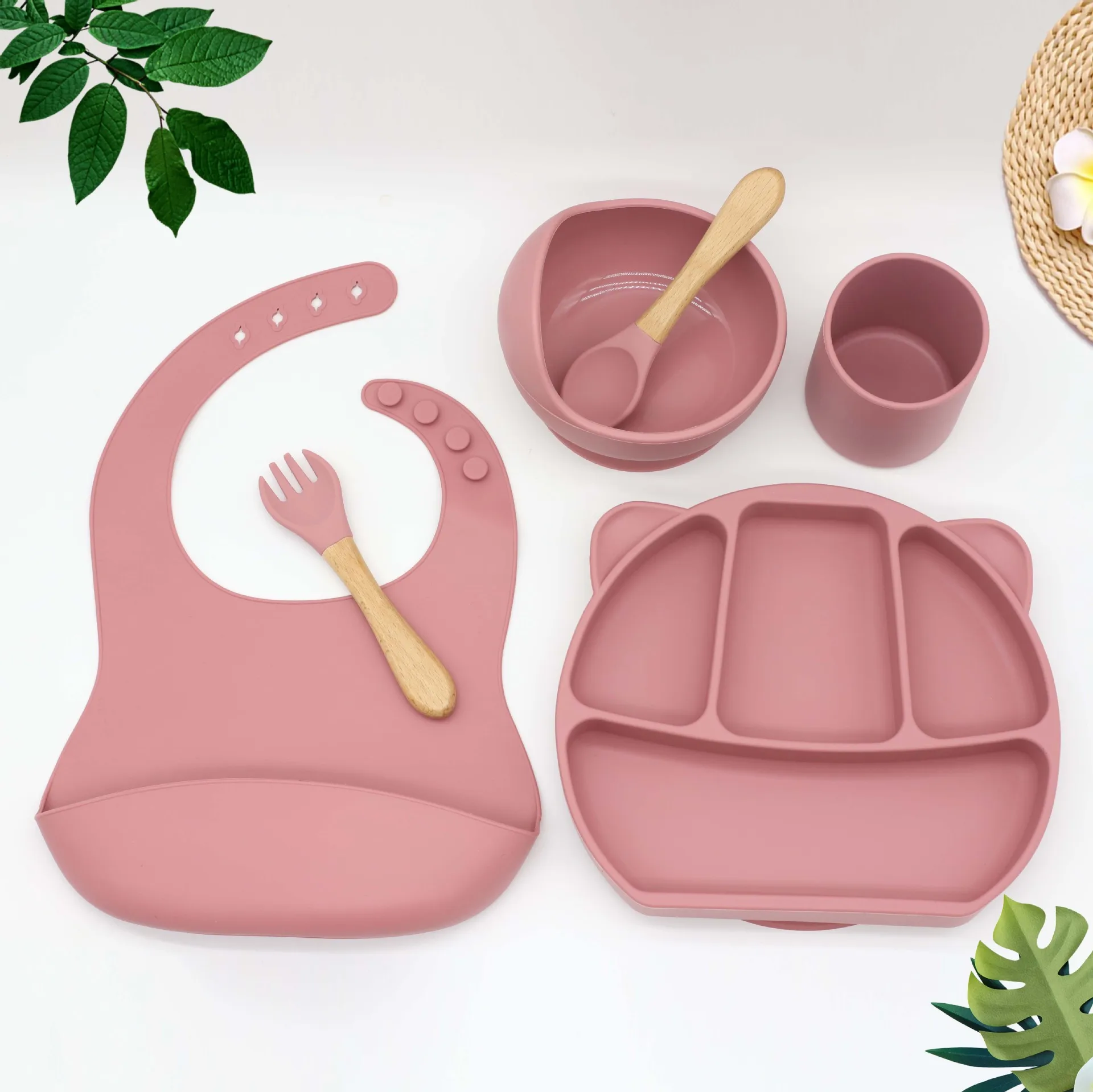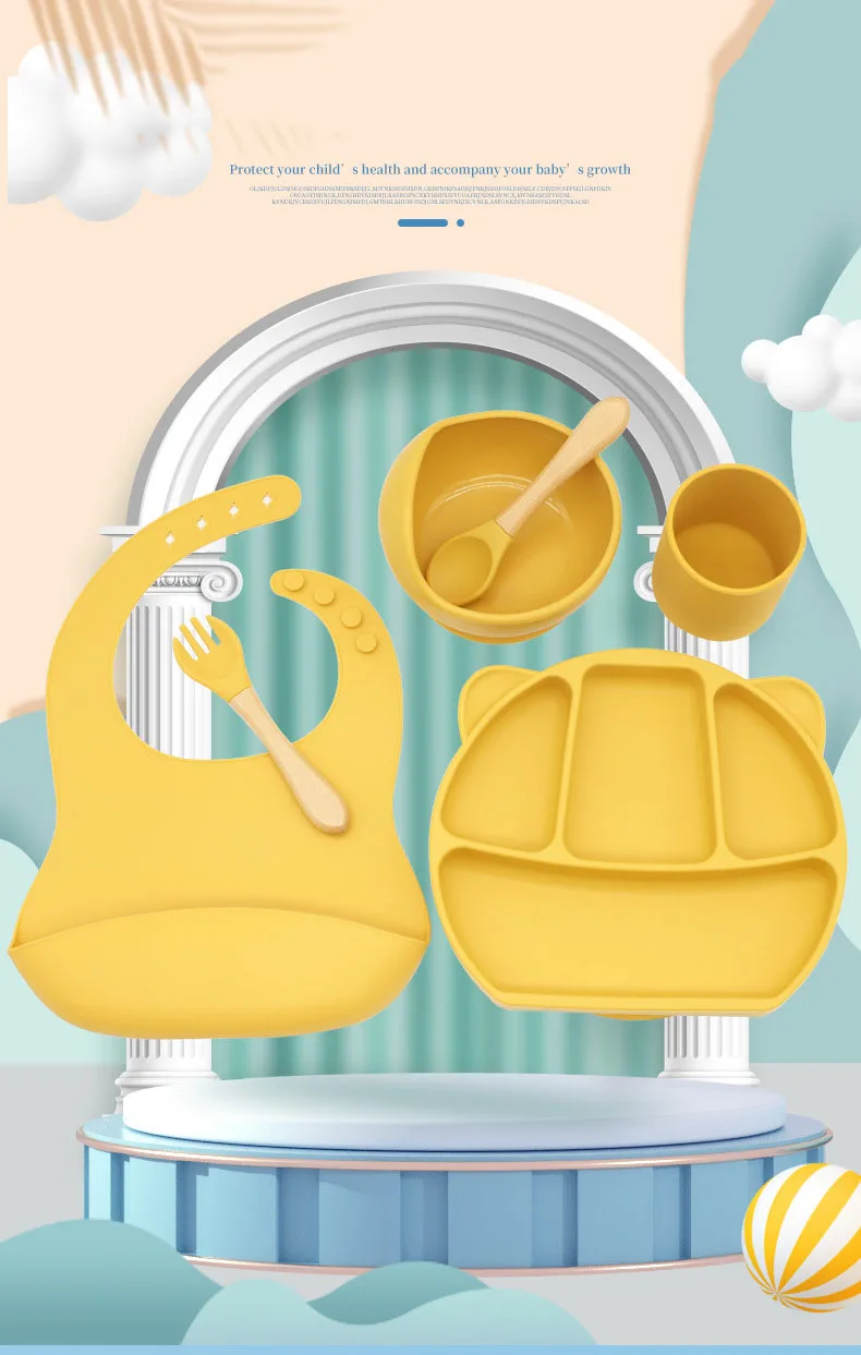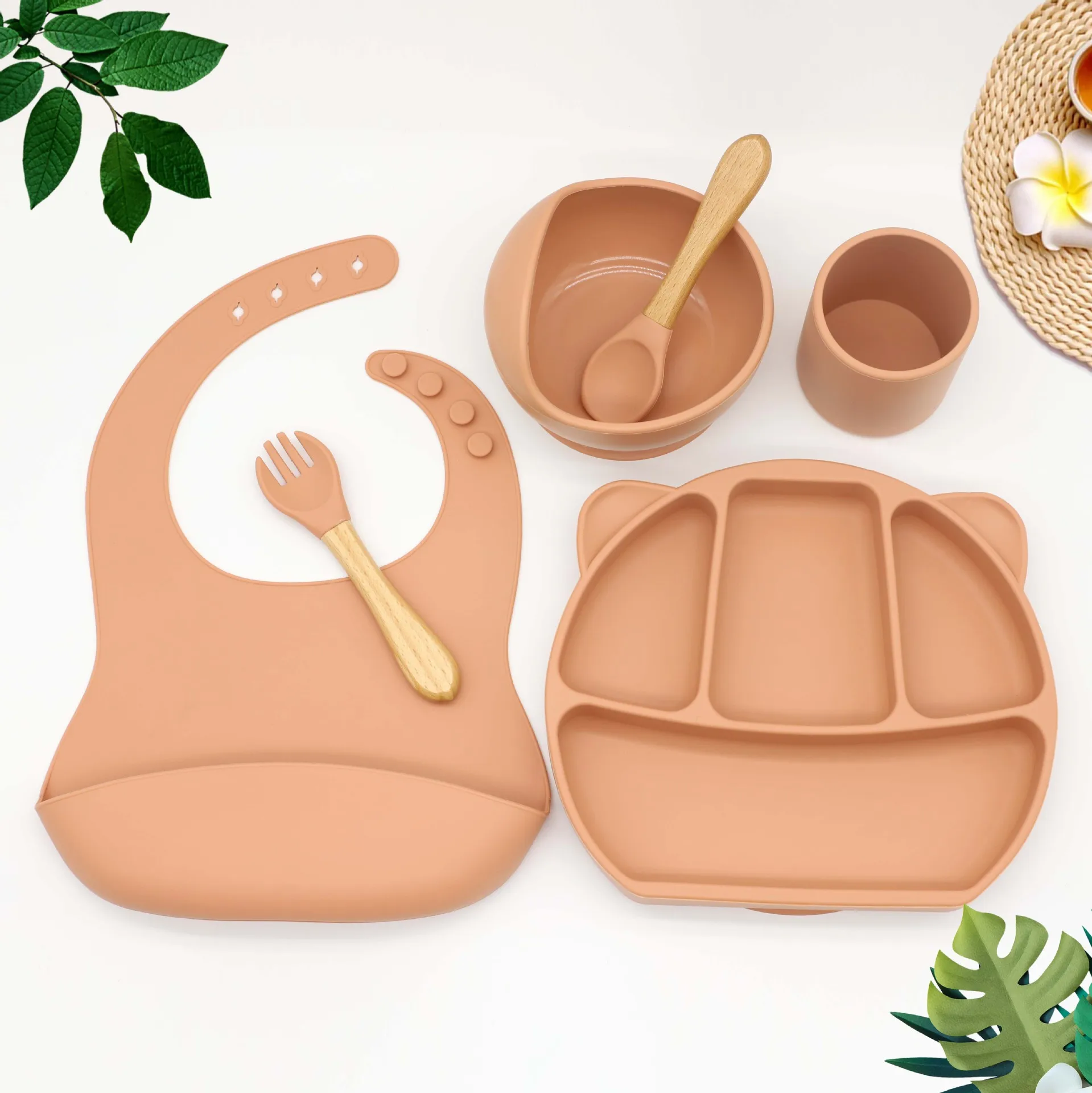 6PCS/Set Baby Silicone Sucker Plate Bowl Cup Bibs Spoon Fork Sets BPA Free Non-slip Children Feeding Tableware Dishes Kids Gift