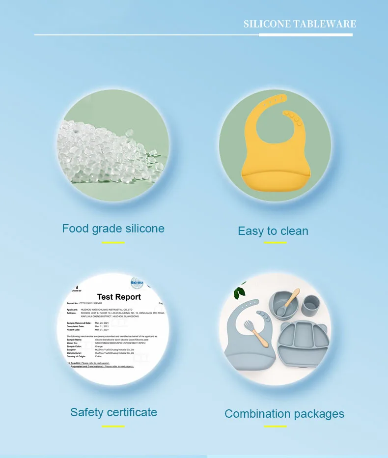 Package: 1 bowl + 1 plate +1 cup +1 bib+1 spoon +1 fork