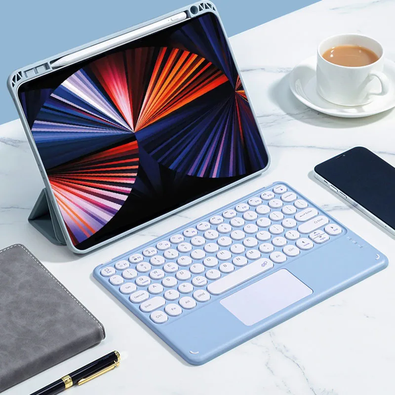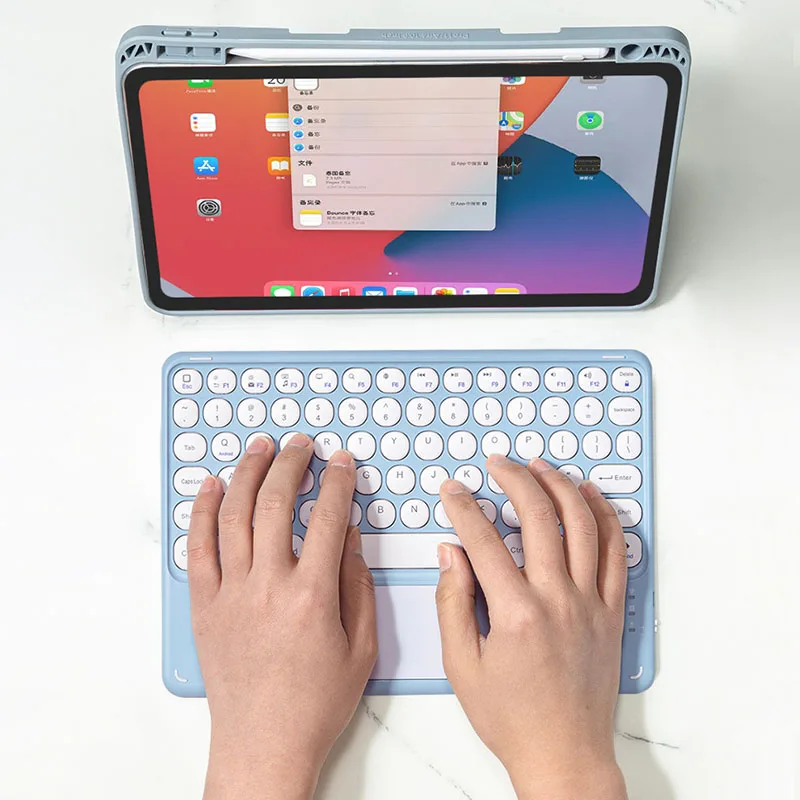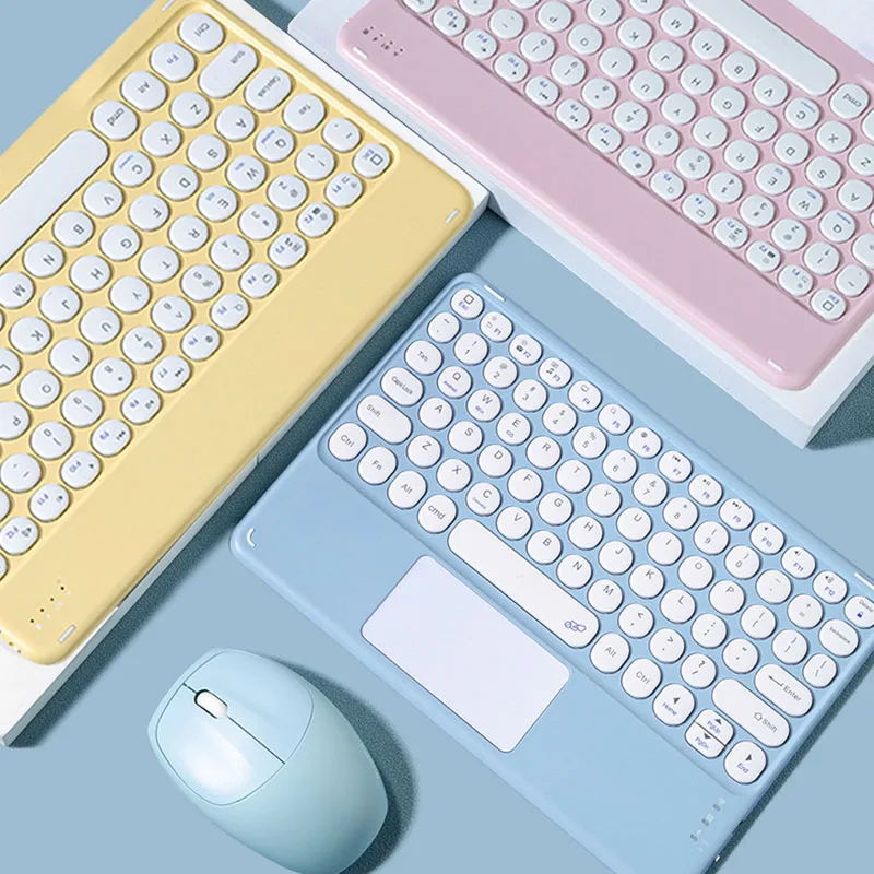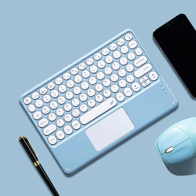 78 Keys Mini Bluetooth-compatible Keyboard with Touch Pad Colorful Frame Round Key Cap for iPad for iPhone for Android Tablet Mobile Phone