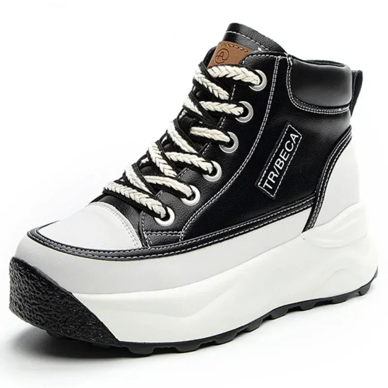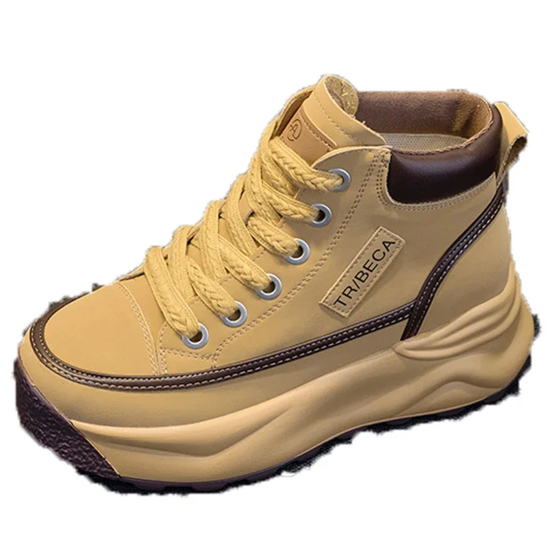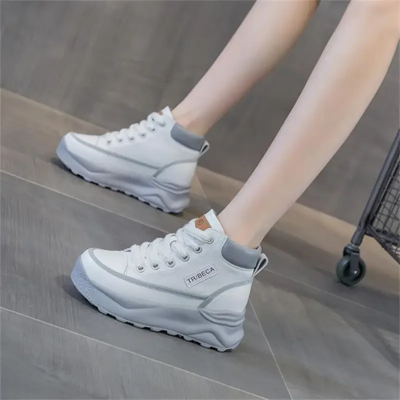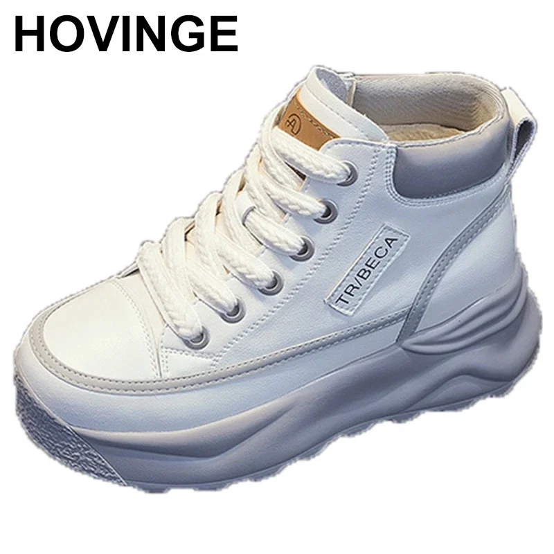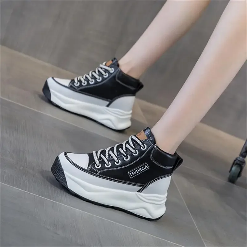 7cm Platform Wedge Sneakers Hidden Heel High Top Genuine Leather Women Casual Shoes Fashion Trainers Warm Boots Winter Booties