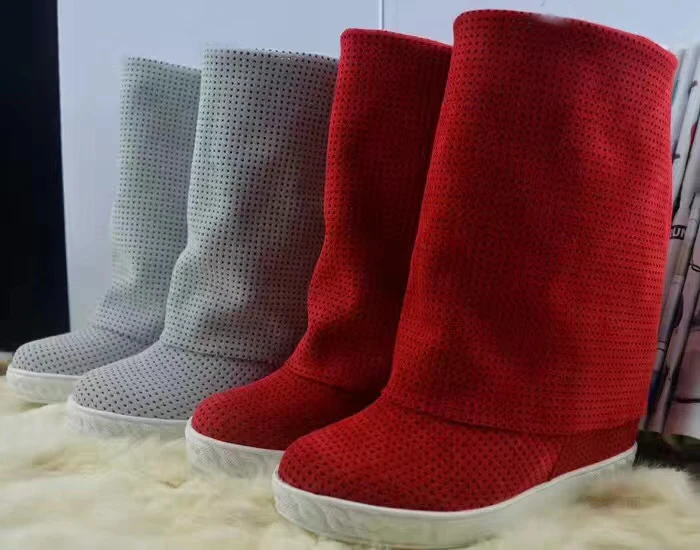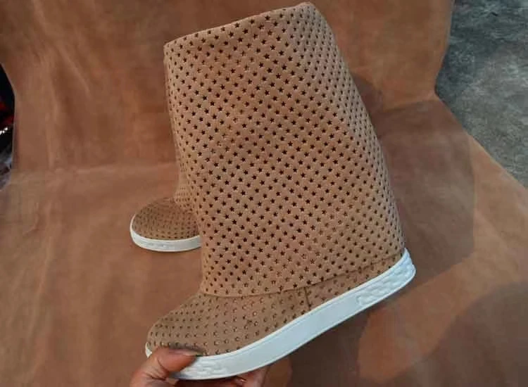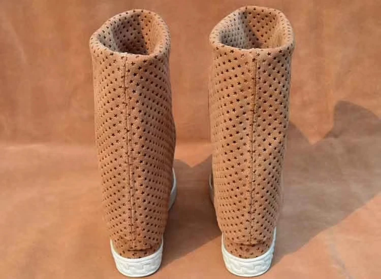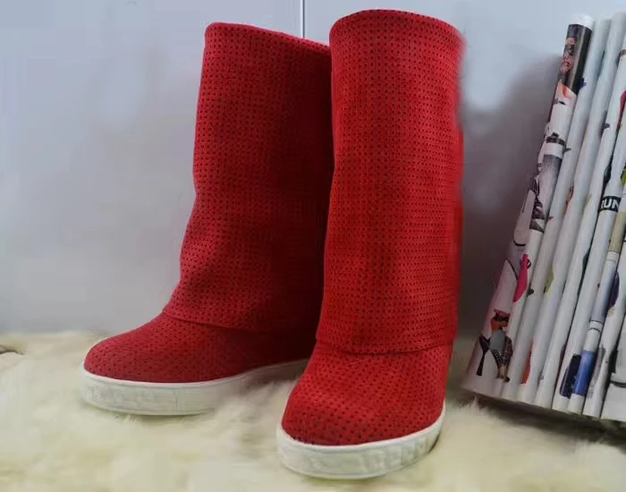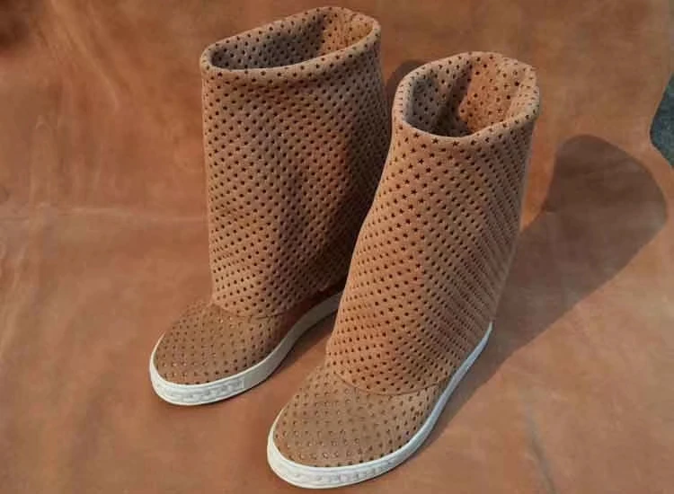 8cm height increasing high top ankle boots for women genuine leather hidden heel bottines pleated winter luxury runway shoes