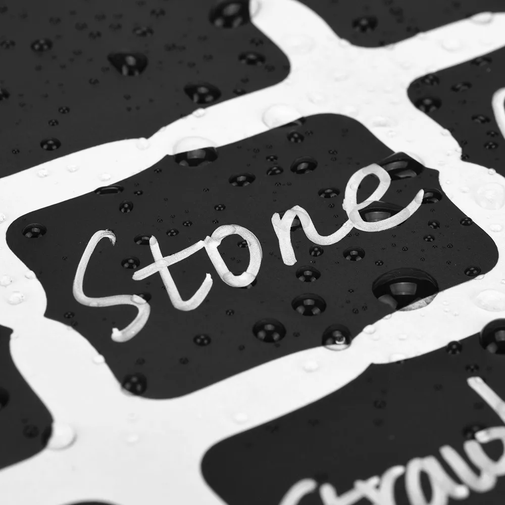 Simply peel and stick the label to your container. Then use any kind of chalk, from regular to liquid chalk, to write on the label.