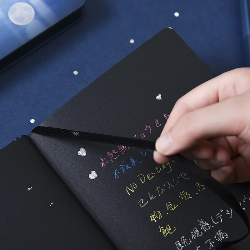A5 Dream Space Black Card Blank Notepad Black Inner Page Handbook Hardcover Diary Painting Graffiti Stationery Gift