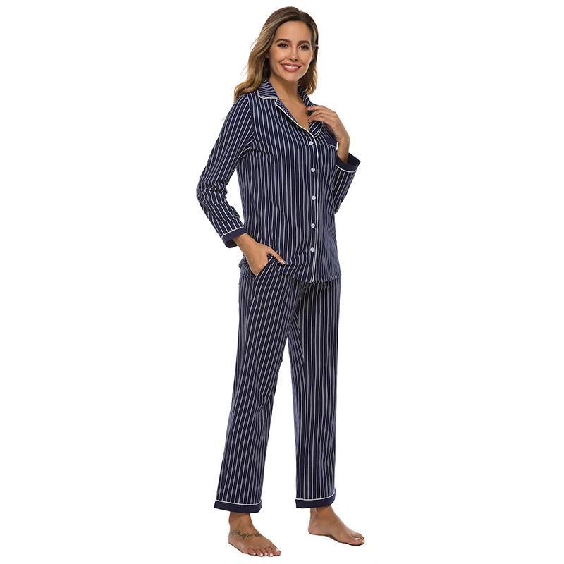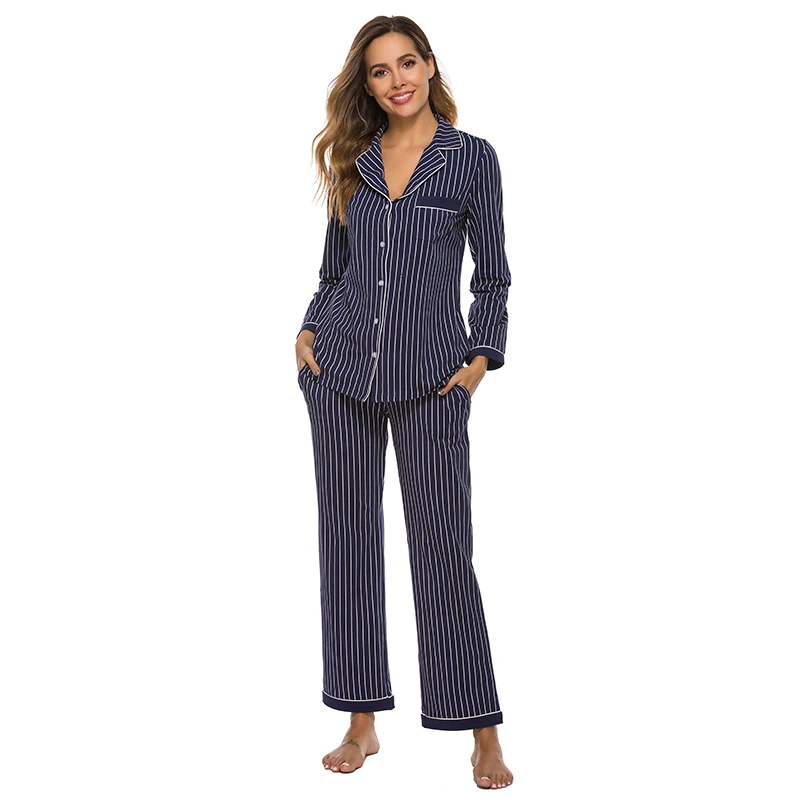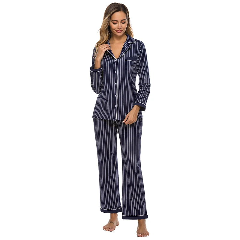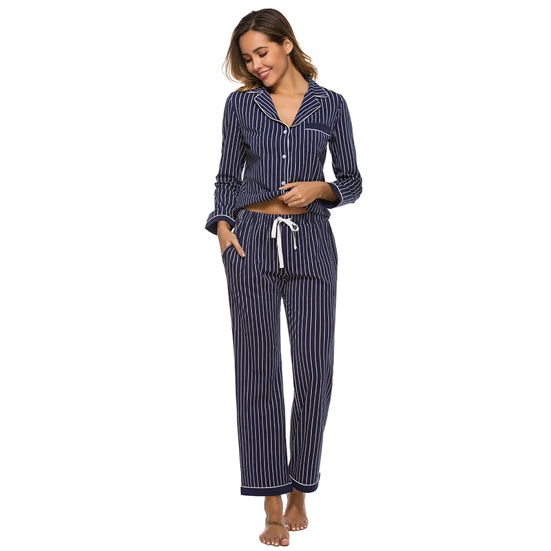 Aamikast Sleepwear Heart Stripe Print Pajamas Sets Women Harajuku Pajamas Women Long Sleeve Shirt Nightwear Set